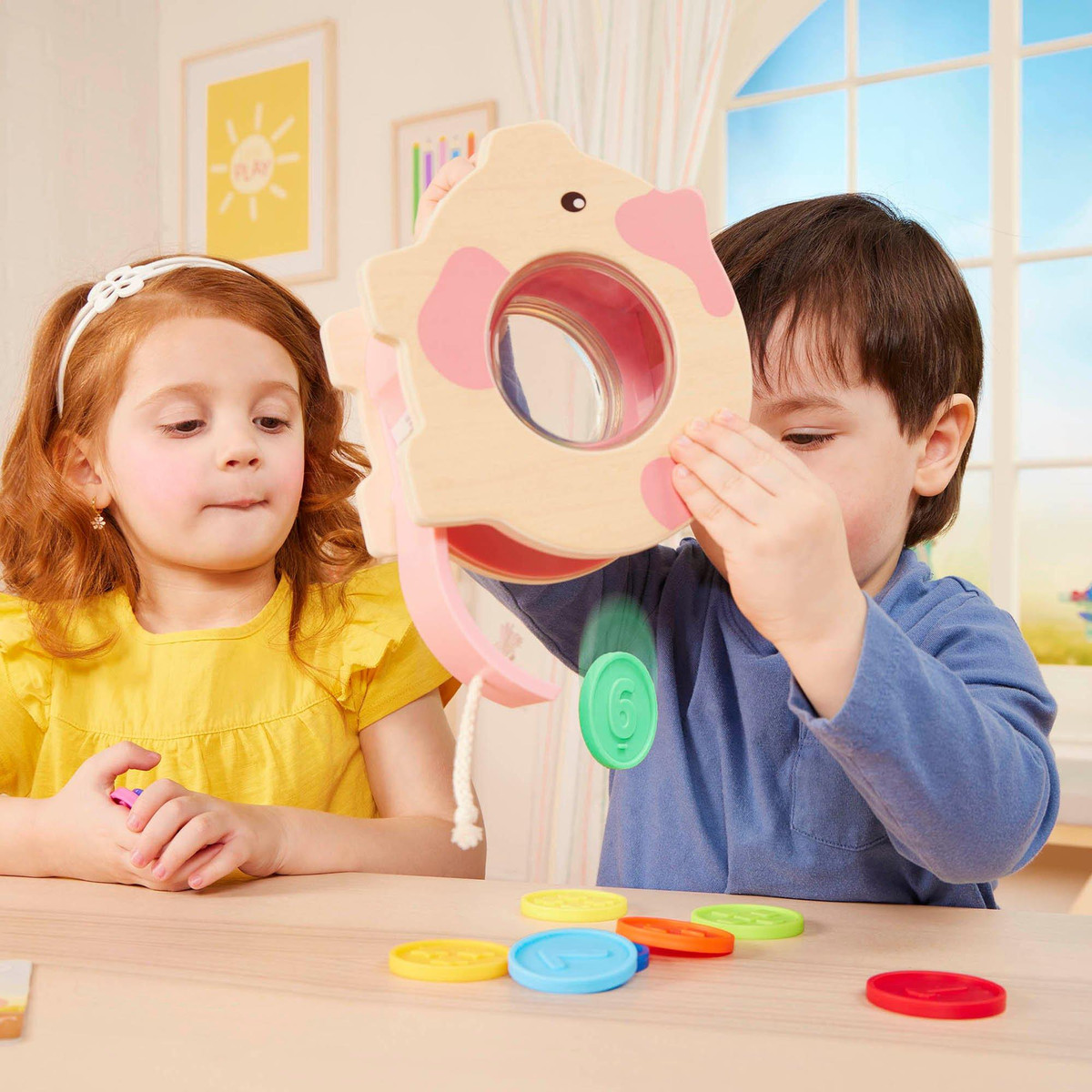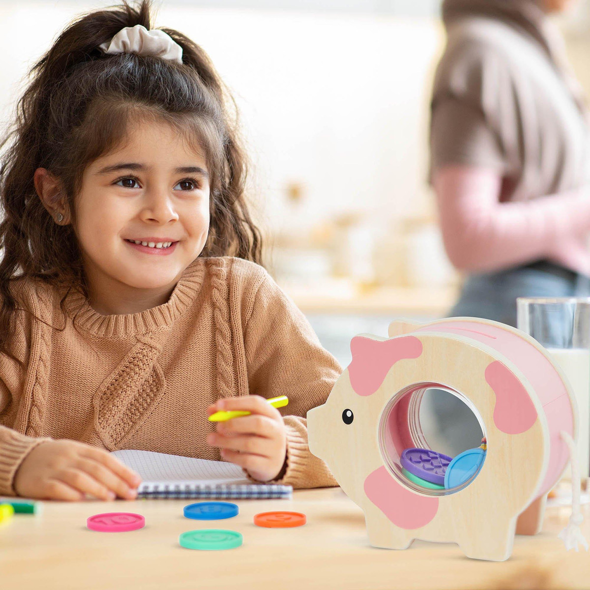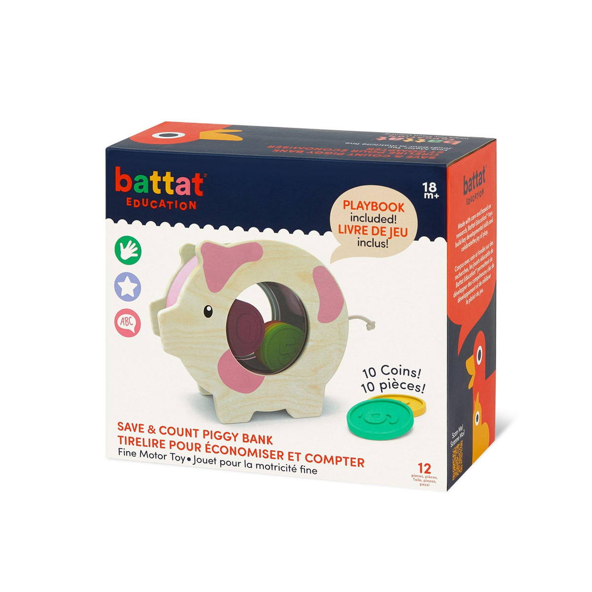Oink, oink! The Save & Count Piggy Bank by Battat Education comes with hours of educational fun. This developmental toy comes with 10 numbered coins in rainbow colorsdrop them in the piggy bank, then pull on its tail to release them! they make great tools for developing fine motor skills and hand-eye coordination.they make great tools for developing fine motor skills and hand-eye coordination. they make great tools for developing fine motor skills and hand-eye coordination.