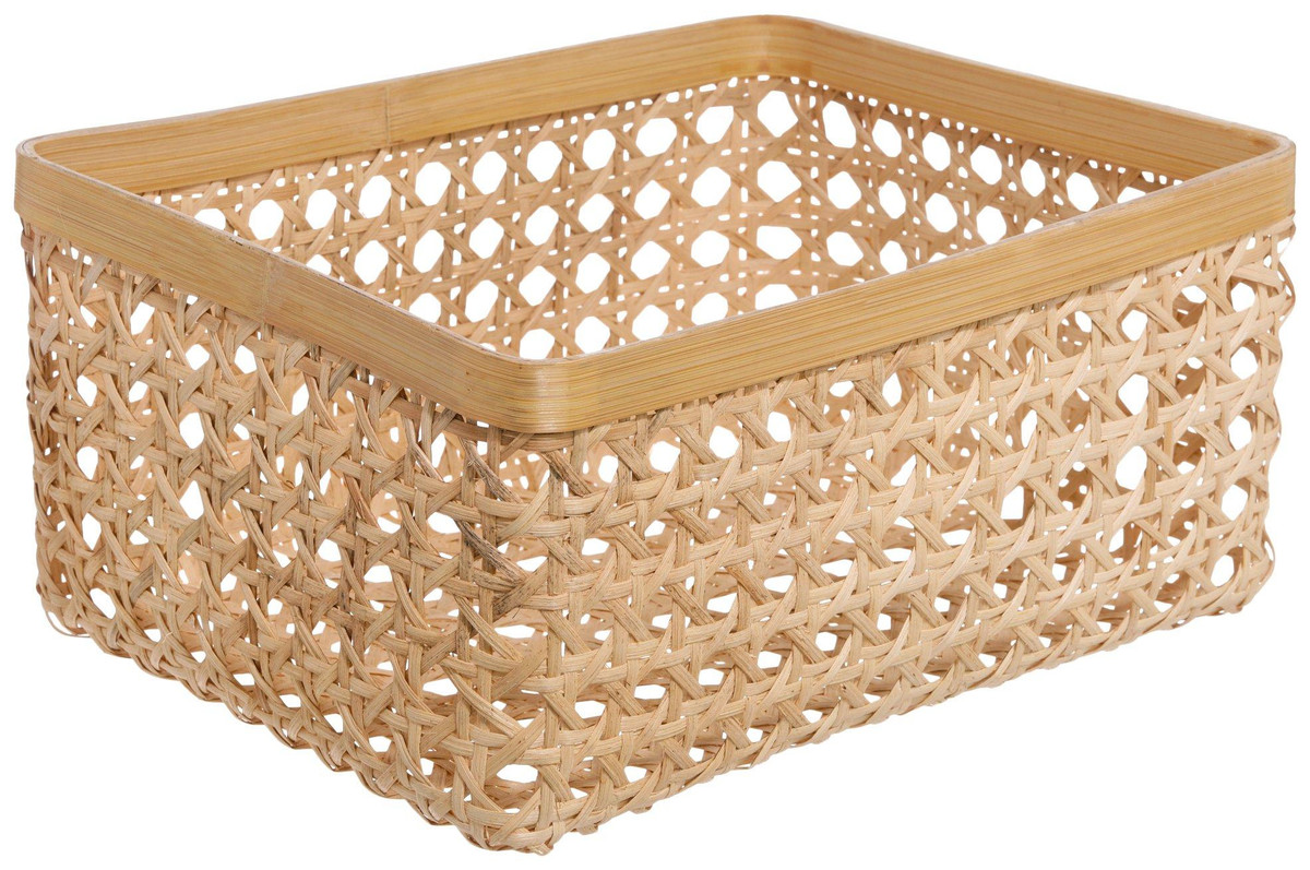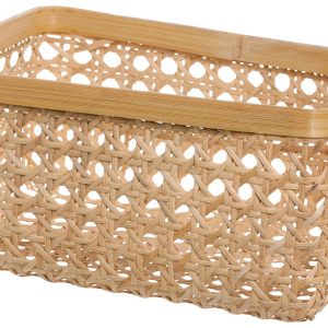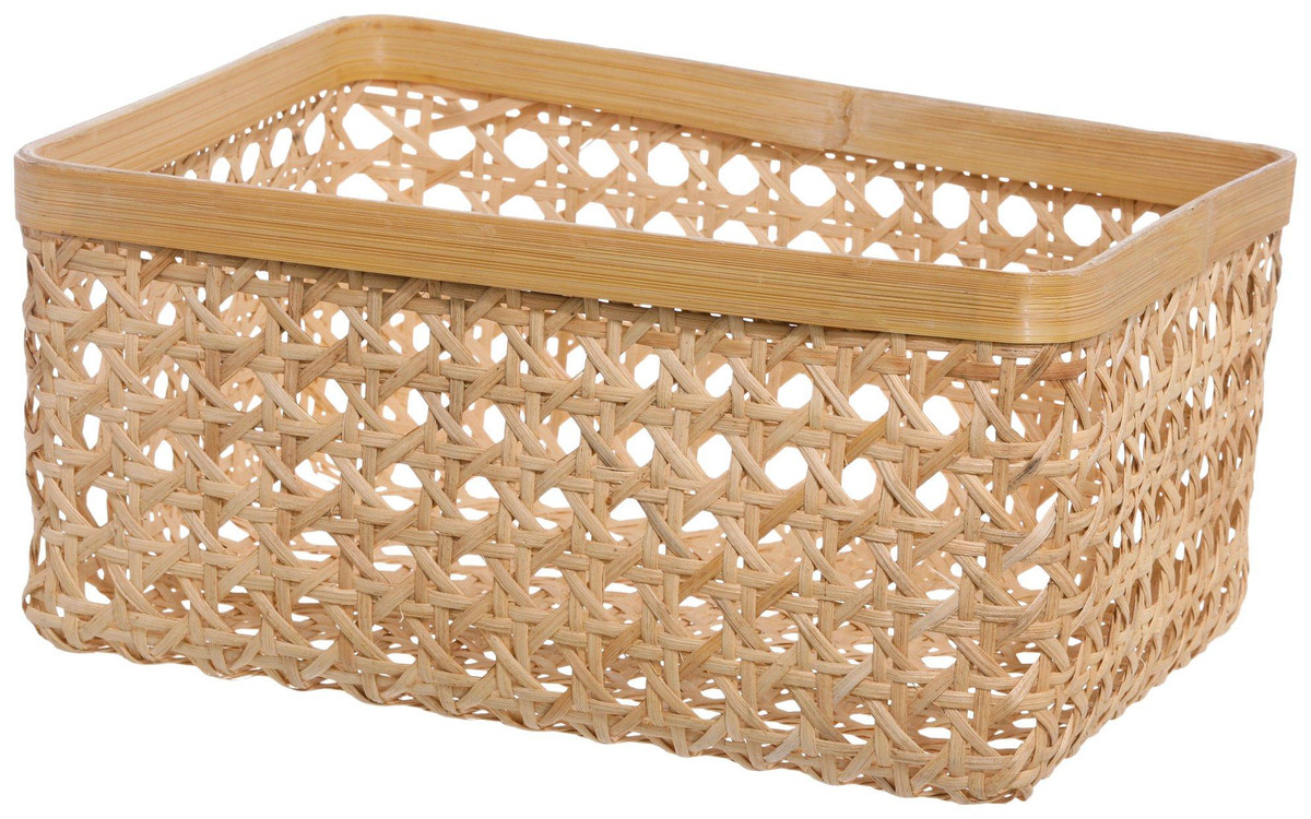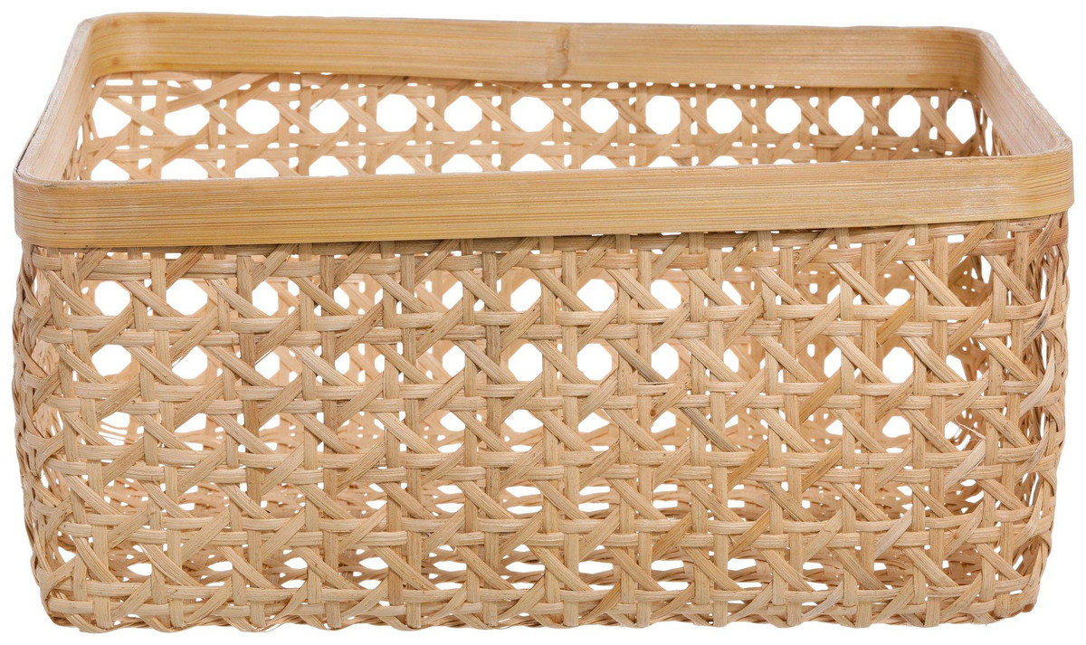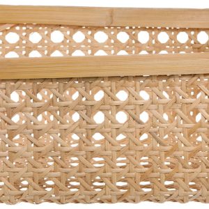Organize with natural charm! This 16 x 12 x 7 in rectangular basket is crafted from natural cane and bamboo, blending rustic elegance with everyday function. Perfect for storing towels, toys, or household essentials, it adds a warm, earthy touch to any space.
