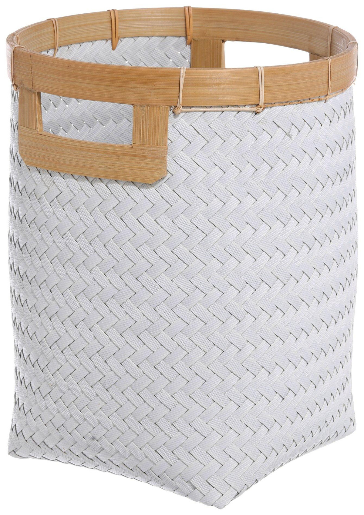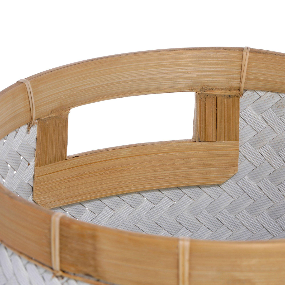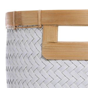 Natural simplicity meets refined craftsmanship in the Round Square Bottom Bamboo Storage Basketa unique fusion of organic texture and structured design. Handwoven from sustainable bamboo, its round top flows seamlessly into a square base, creating a striking shape that offers both visual appeal and sturdy functionality. Measures 11 in x 11 in x 14 in.