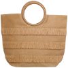 Make a statement on your next getaway with the Yacht Club Oversized Weekender Beach Tote Bag. Crafted from multicolored woven straw, it features two leather-like shoulder straps and a spacious, fully lined interior with a magnetic snap closure. Ideal for beach trips, weekend travel, or casual summer outings. Measures approximately 23 in x 22 in x 8 in.