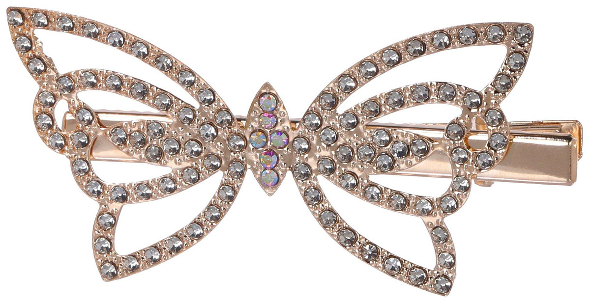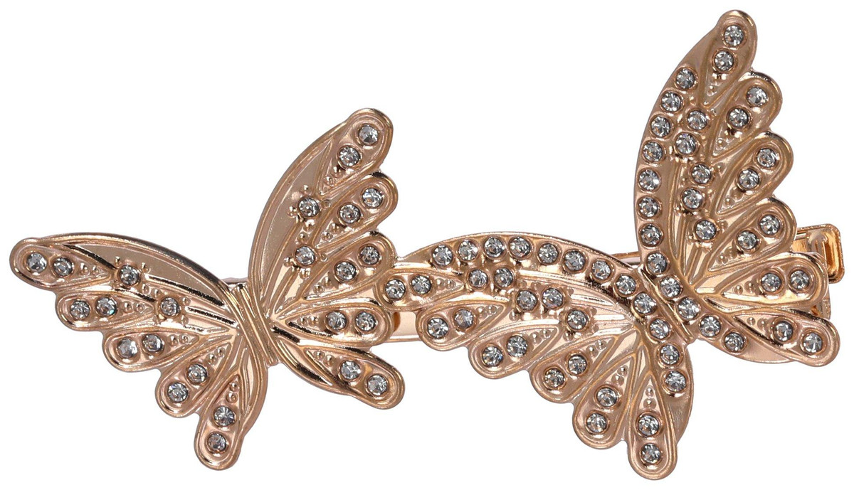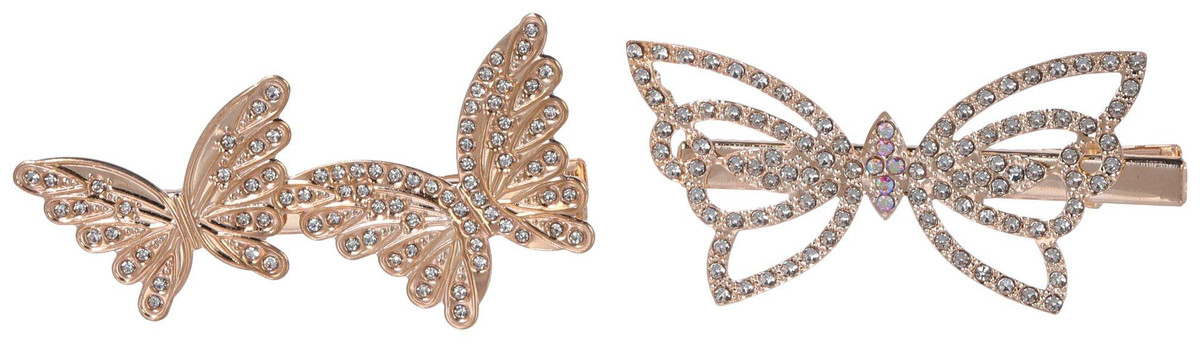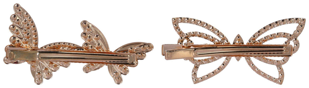 Add a touch of elegance to your look with this set of two golden tone butterfly hair clips. Designed to hold hair securely while adding a graceful accent, these clips are perfect for everyday wear or dressing up for special occasions. Their delicate butterfly shape and shimmering finish make them a charming addition to any hairstyle.