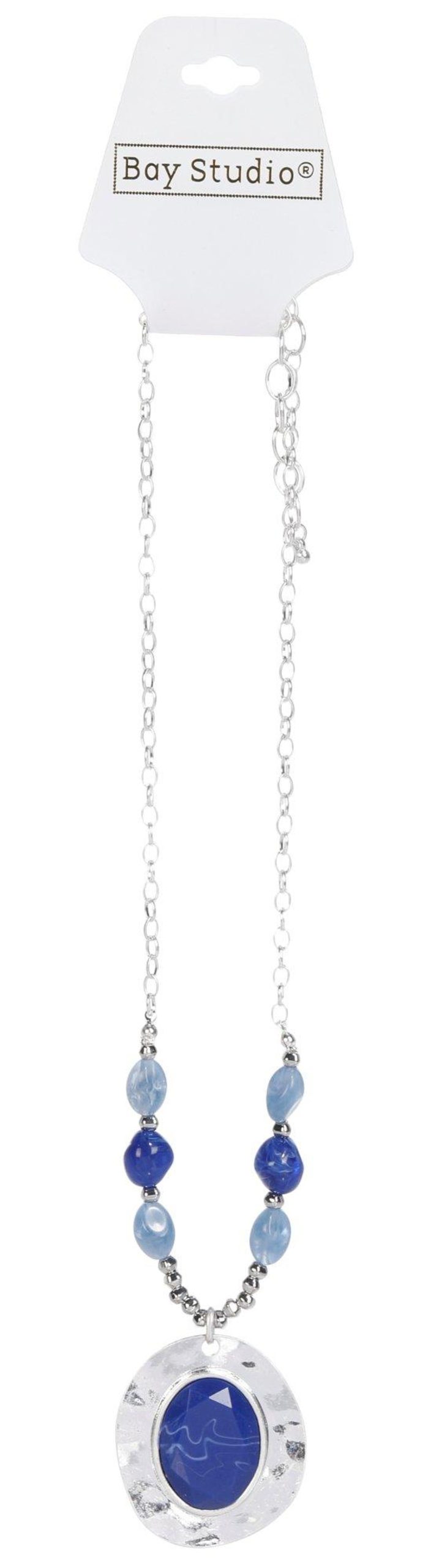 Effortlessly elevate your look with a blend of shimmer and color from this 21 inch necklace, featuring silver and blue beading with a striking pendant. Its bold yet refined style adds instant charm to both casual wear and more polished ensembles. Ideal for day-to-night transitions, offering just the right touch of statement-making elegance.