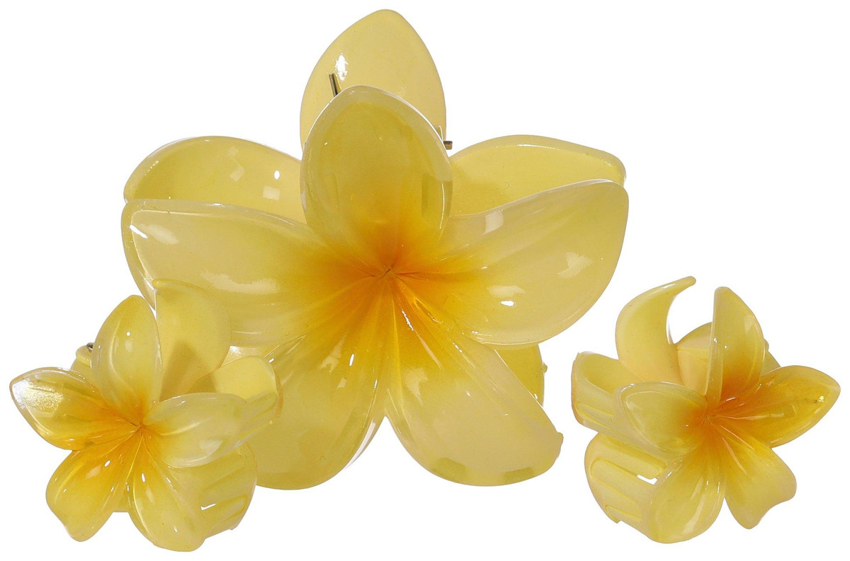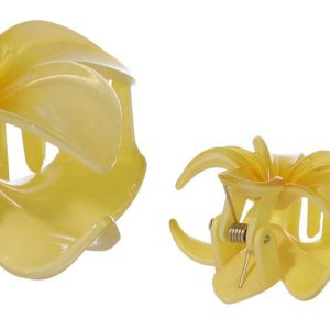Add a cheerful pop of color to your hairstyle with this pack of three yellow flower-shaped hair clips. Featuring one medium-sized clip and two smaller ones, this set offers a playful and balanced look. Designed for a secure hold and easy styling, they are perfect for brightening up everyday outfits or adding a fun touch to special occasions.
