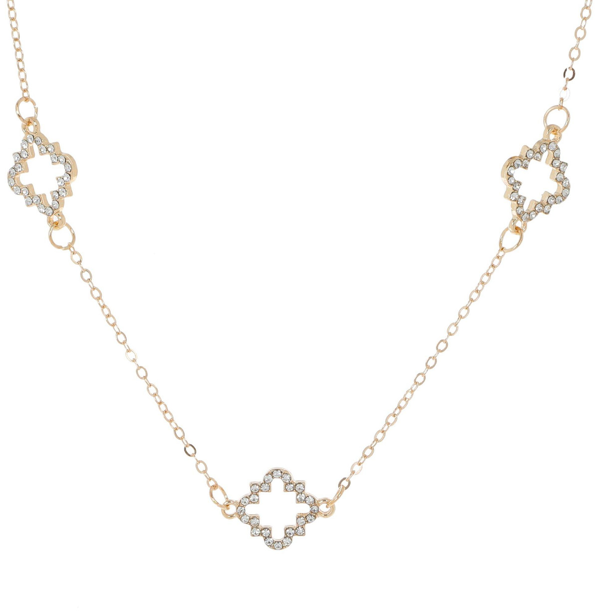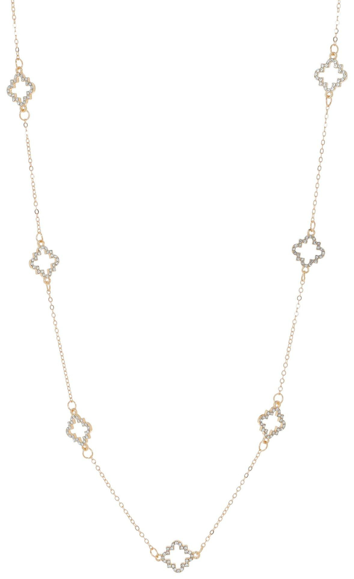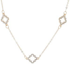 Add a touch of elegance and charm to your jewelry collection with our Gold-Tone Necklace. Featuring beautiful Clover pendants, this piece is adorned with sparkling faux gem and crystal embellishments. The timeless gold-tone finish offers a sophisticated look, making it perfect for both everyday wear and special occasions.