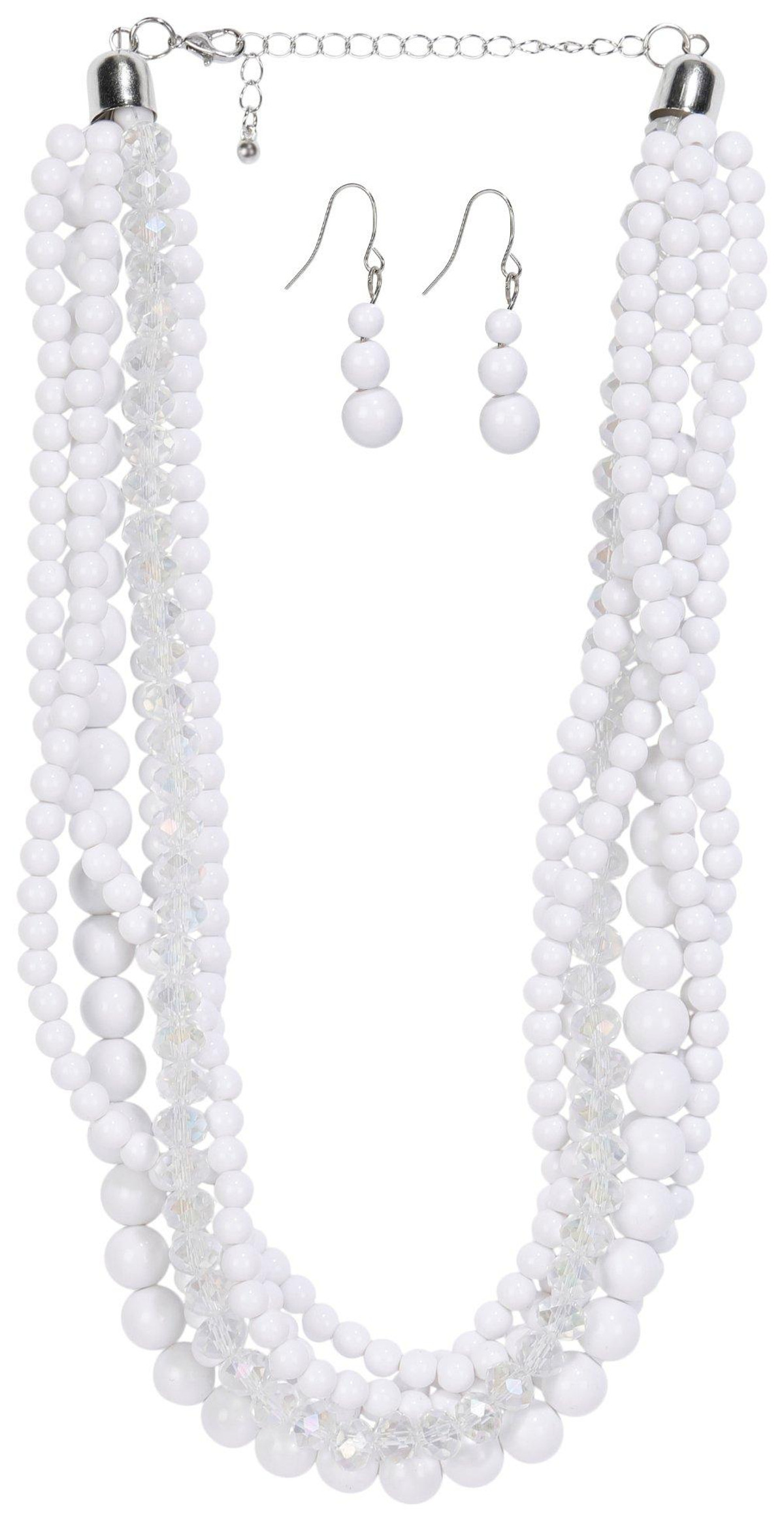 Add elegance and charm to any look with this Multi-Row Beaded Necklace and Earrings Set. The layered necklace features a mix of beads and faux crystal accents for added sparkle, paired with matching beaded dangle earrings. A versatile set designed to elevate both everyday outfits and special occasion styles.