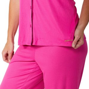 Introducing this 2-piece Sleepwear Set, a cozy and stylish addition to your nighttime routine. This set features soft ribbed fabric that provides ultimate comfort. It includes relaxed pants and a short sleeve buttoned shirt with a convenient chest pocket. Fabrication is 95% polyester, 5% spandex.
