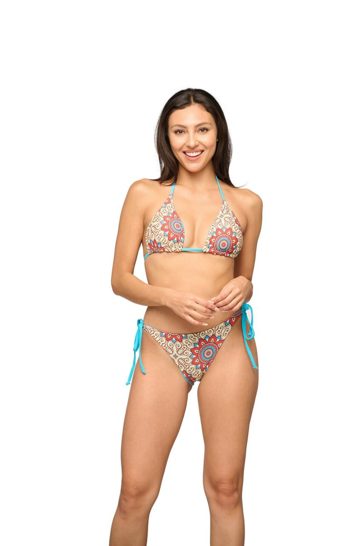 Turn heads with our reversible string bikini swim set! Featuring a colorful mosaic on one side and a chic solid design on the other, this fashion-forward set is perfect for young, cheeky, and sporty individuals. Adorned with a Be Kind graphic, its ideal for beach days, pool parties, and resort getaways. Whether youre hanging out with friends or staying active, this versatile bikini ensures you look stylish and feel confident. Embrace the fun and spread kindness with this must-have swimwear!
