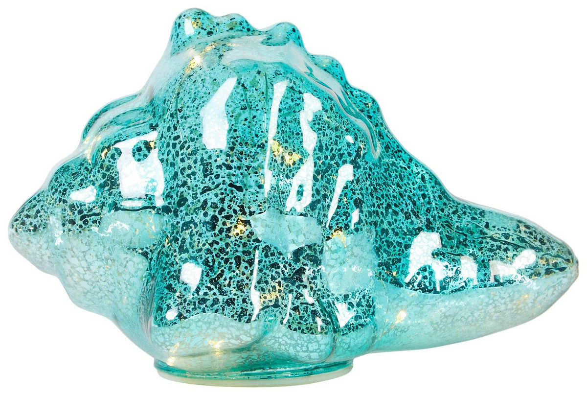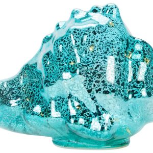 Add ocean-inspired elegance to your space with the 7 in Turquoise Glass Conch Figurine, designed with smooth curves and vibrant color that captures coastal light beautifully. Crafted from glass for a refined decorative accent. Perfect for display on shelves, mantels, or seaside-themed interiors. Measures approximately 7 in x 5 in x 5 in.