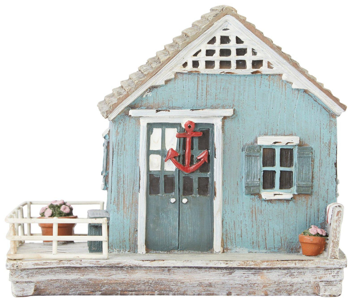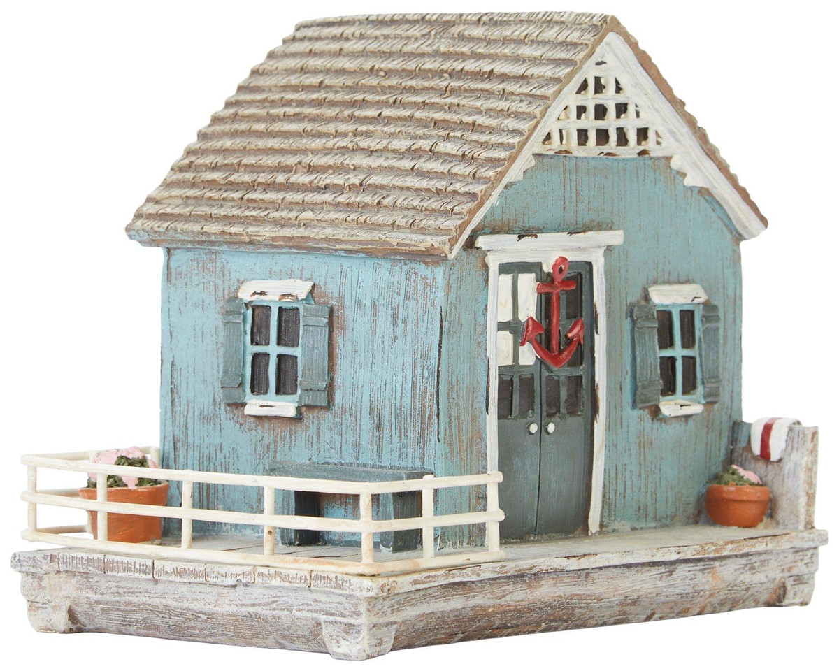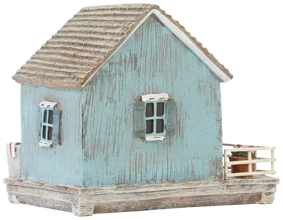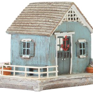 Bring coastal character to your decor with the 8 in Resin Blue Fishing Shack Figurine, featuring intricate details inspired by seaside cabins. Crafted from durable resin, it adds a rustic nautical touch to shelves, mantels, or tabletops. Ideal for indoor display in beach-themed or casual living spaces. Measures approximately 8 in x 5 in x 7 in.
