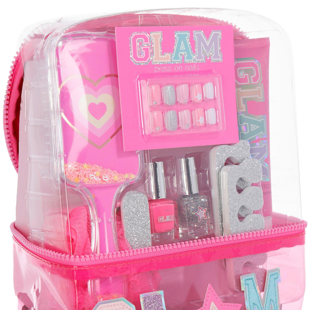 The Next Glam Bag is a fun and stylish beauty set designed especially for kids ages 6 and up. This all-in-one glam kit includes a beauty cosmetic bag, body lotion, two nail polishes, a hair brush, a soft loofah, ten press-on nails, a nail file, and two toe separators. Perfect for imaginative play and beginner beauty routines, it encourages creativity and self-expression. With vibrant colors and kid-friendly accessories, this glam bag makes a great gift and offers hours of fun pampering.