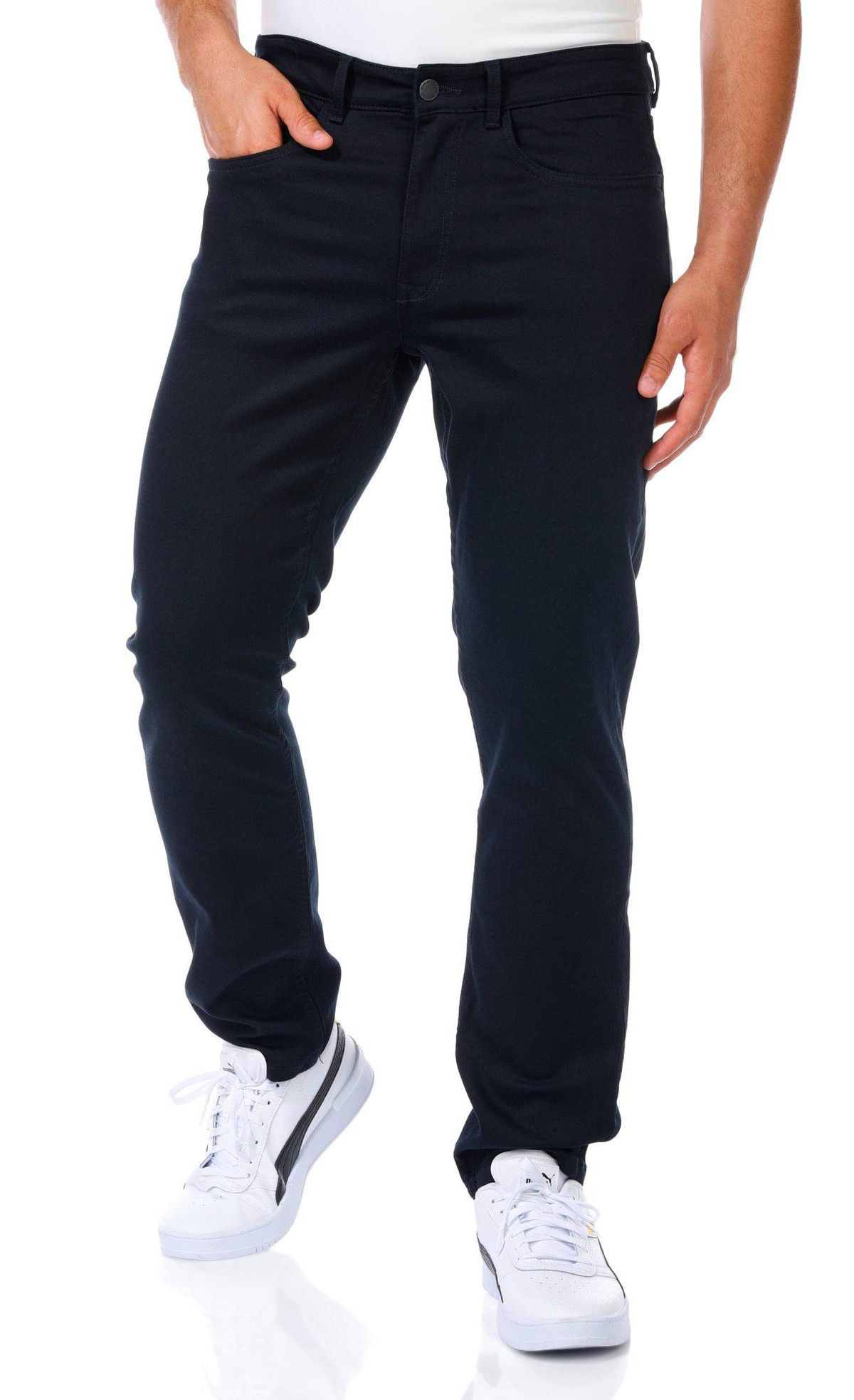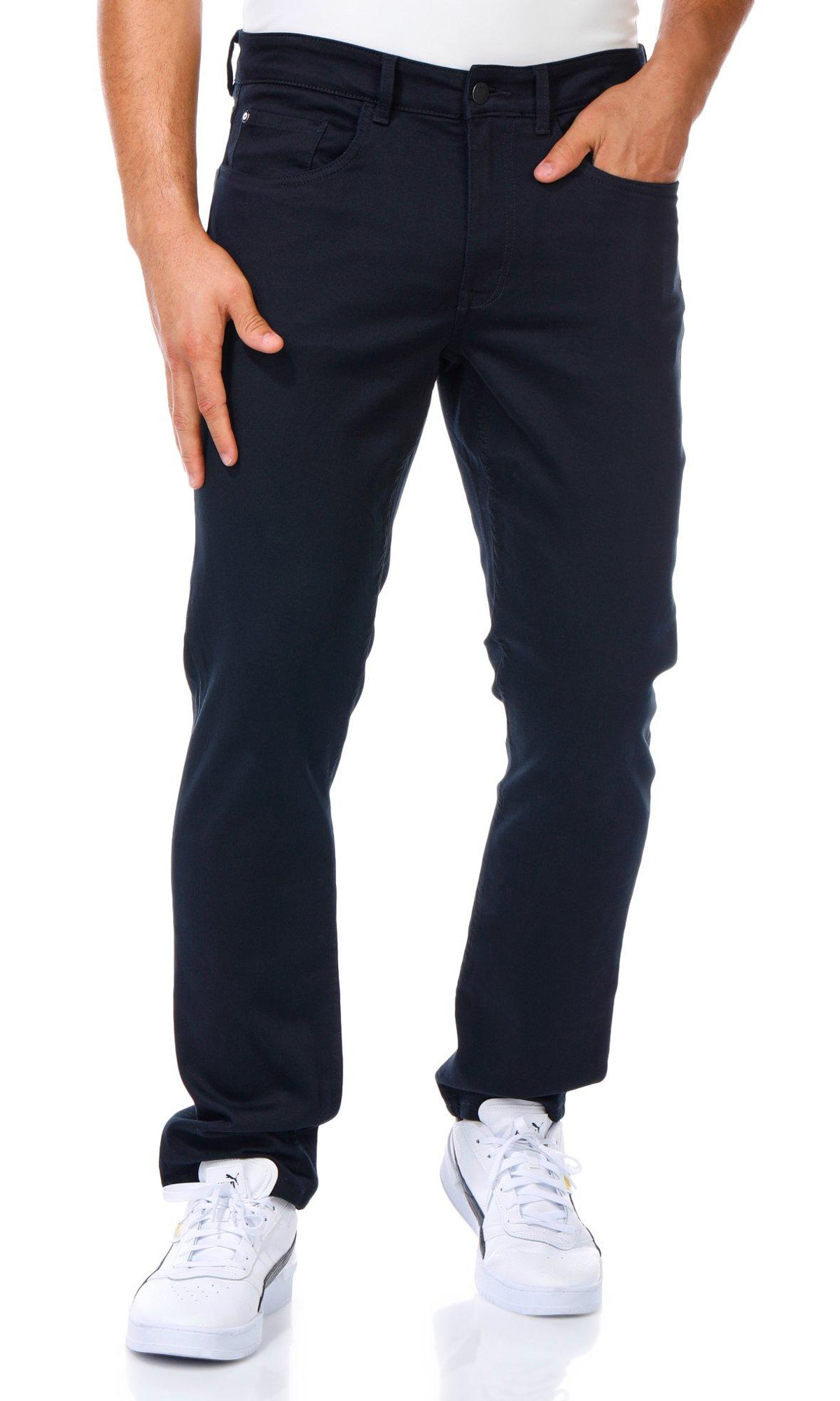 Designed for versatility, the Men’s Traveler Pants feature a solid color, classic 5-pocket cut, slim leg fit, and a secure button-fly zip closure. Perfect for on-the-go comfort with a polished look. Fabrication 64% cotton, 33% polyester, 3% spandex