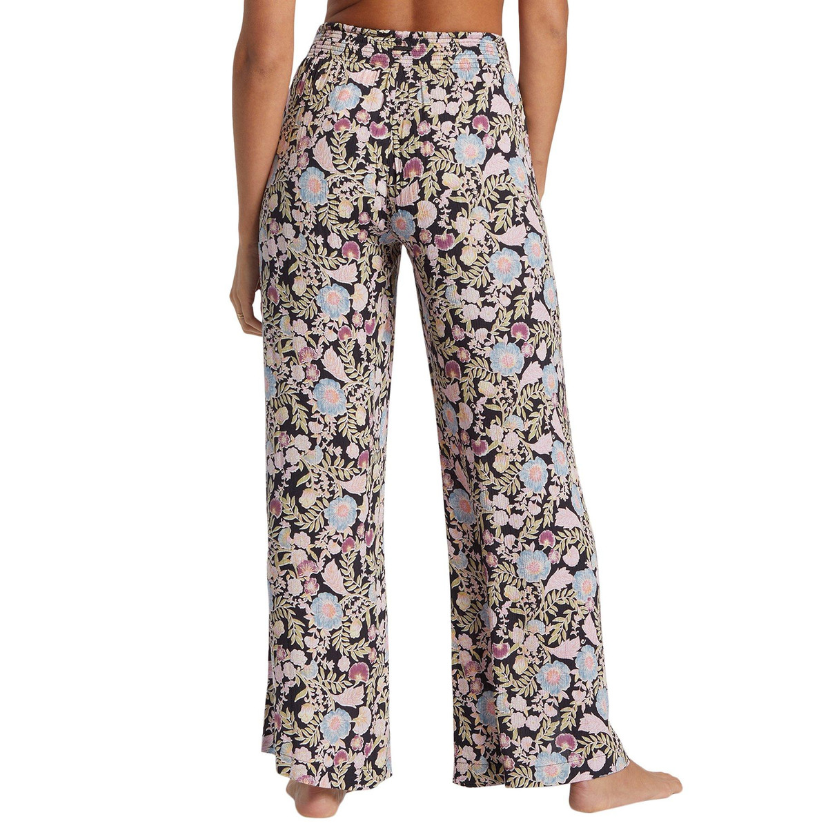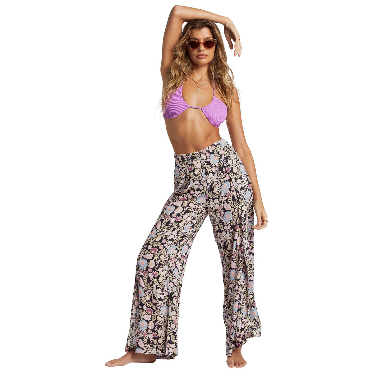 Ahh the Split Spirit Pants. A pant that takes in the trade winds, this vacation-inspired pair stands out with a dark floral print and split front leg. The high waist pant walks the line between covered and cool with high front slits and a drapey wide leg.