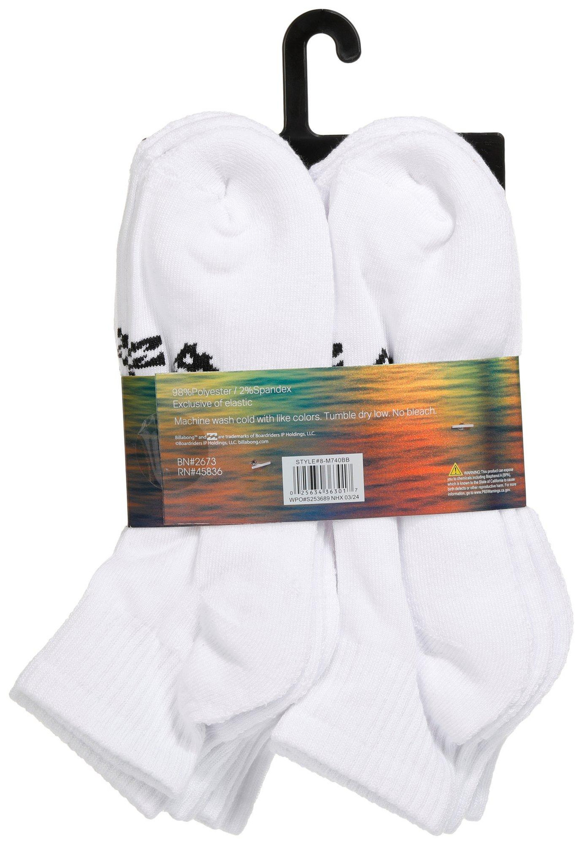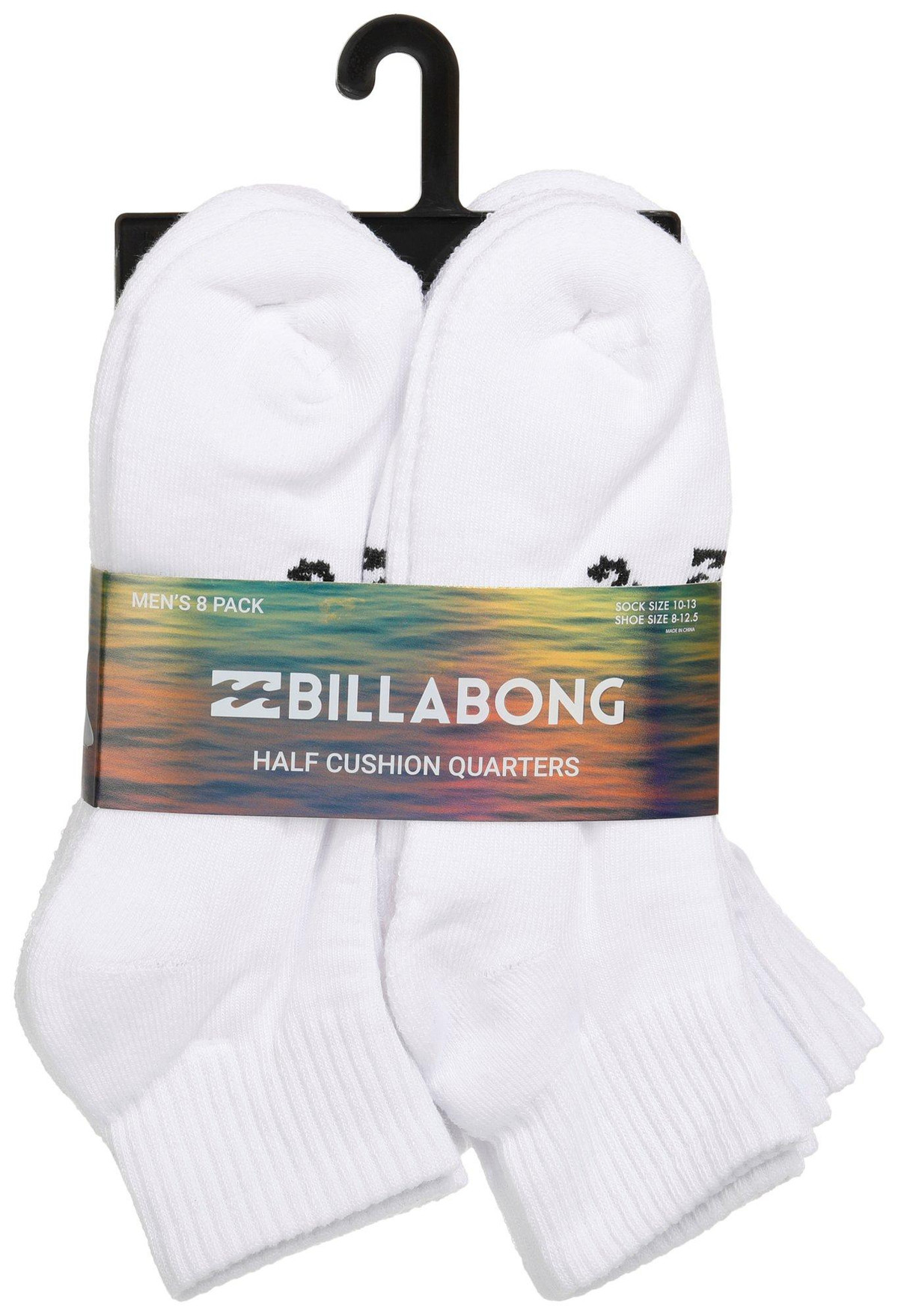 These mens half cushioned quarter socks feature solid white color on an ultra-soft poly blend fabrication, sweat wicking, and cushioned soles. Contains 8 pairs of socks, white and logo print. Fits sock size 10-13. Fabrication 98% polyester, 2% spandex (Exclusive of elastic)..