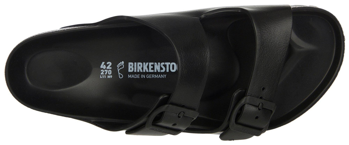 The legendary two-strap design from BIRKENSTOCK – the Arizona. Modeled on the cork original, this sandal is made from ultra lightweight and highly flexible EVA. These sandals are shock absorbing, waterproof, and skin-friendly. Wear them at the beach, in the garden, or around the gym and after workouts. It’s the perfect addition to your classic BIRKENSTOCK sandals.