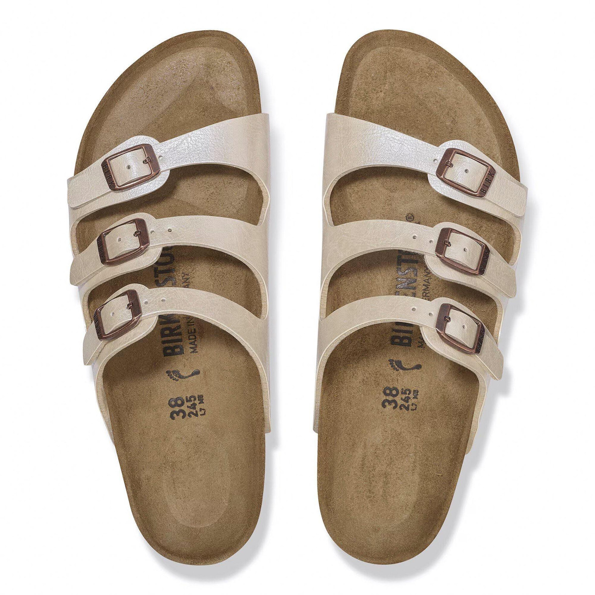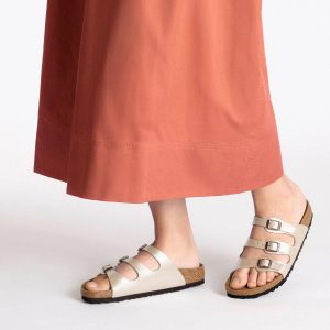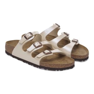 Catch the sun in the Florida Graceful women’s footbed sandal from BIRKENSTOCK. Featuring a shimmery, embossed faux leather upper that reflects light, this three-strapped sandal puts your feet on display. The cork-latex footbed cradles, while the flexible sole supports each step.