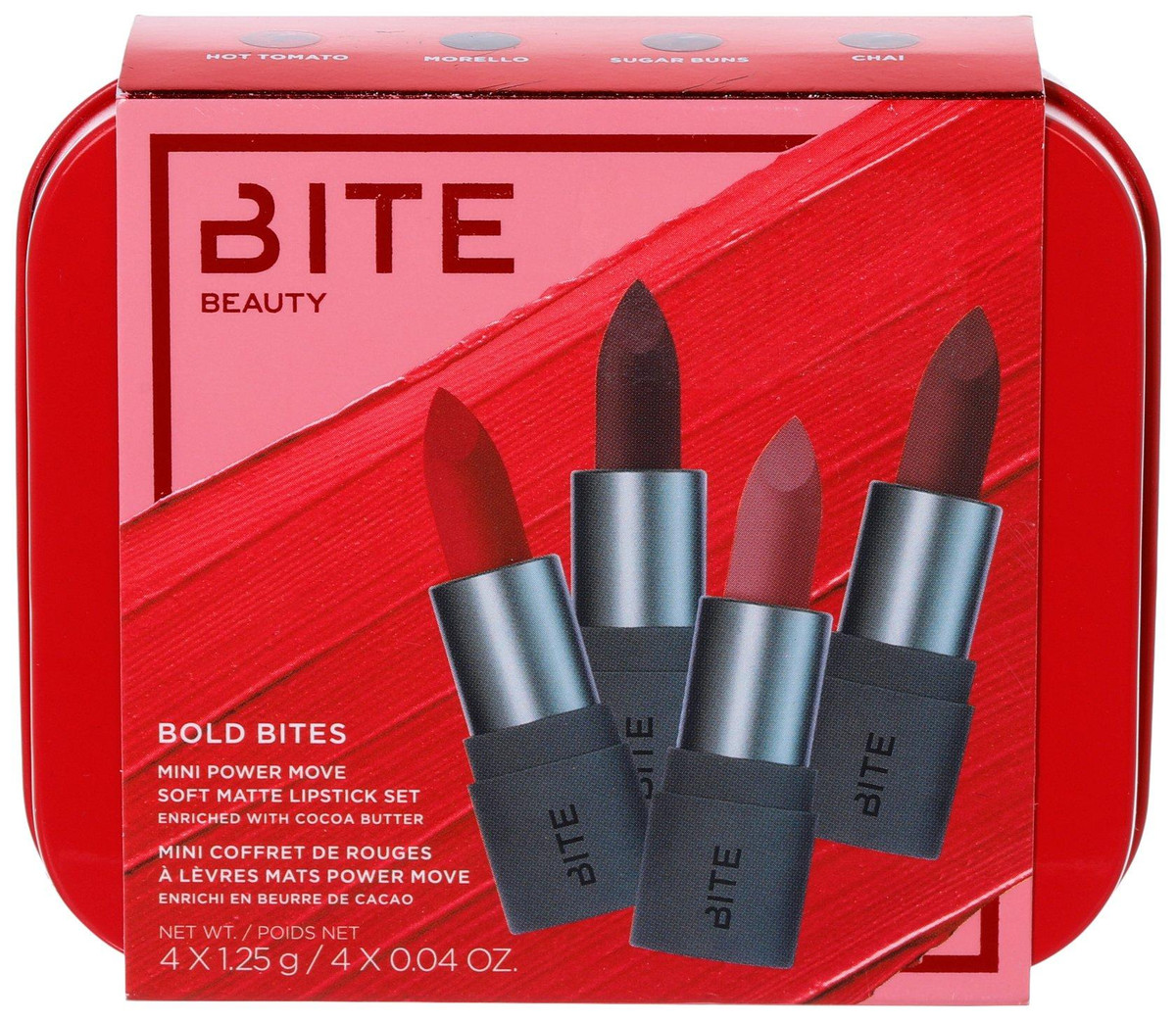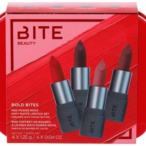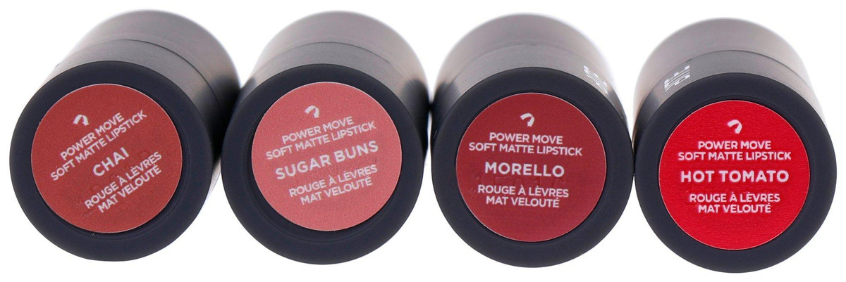 Includes mini lipsticks in Hot Tomato, Morello, Sugar Buns and Chai. This gift-ready set features four bestselling Mini Power Move Soft Matte Lipstick Set, perfect for adding a soft wash of color or a bold statement. With a creamy satin finish, these trendy nudes and vibrant hues deliver a polished, flawless look for any occasion.