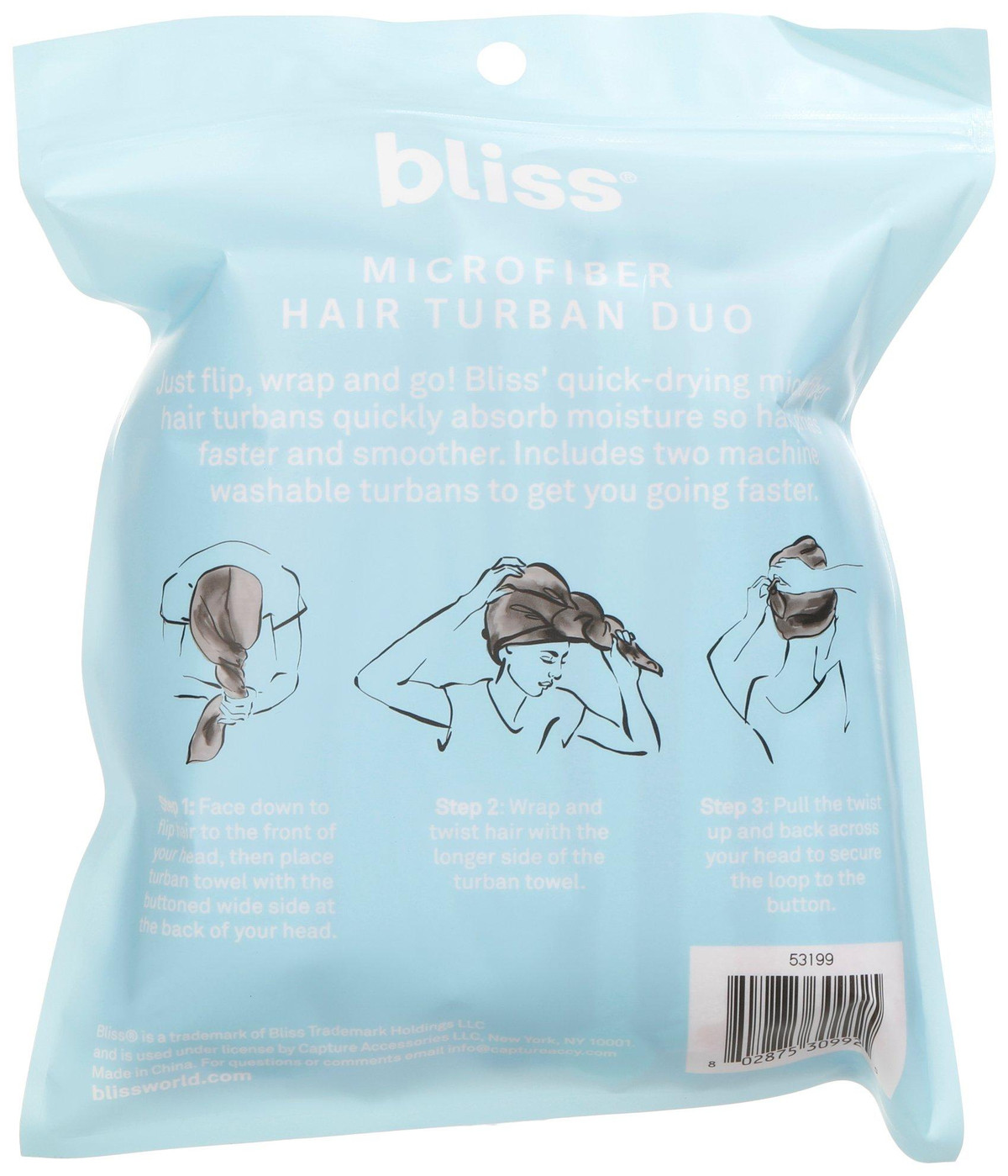 Just flip, wrap, and go! These quick-drying microfiber hair turbans quickly absorbs moisture so hair dries faster and smoother. Includes two machine washable turbans to get going faster.
