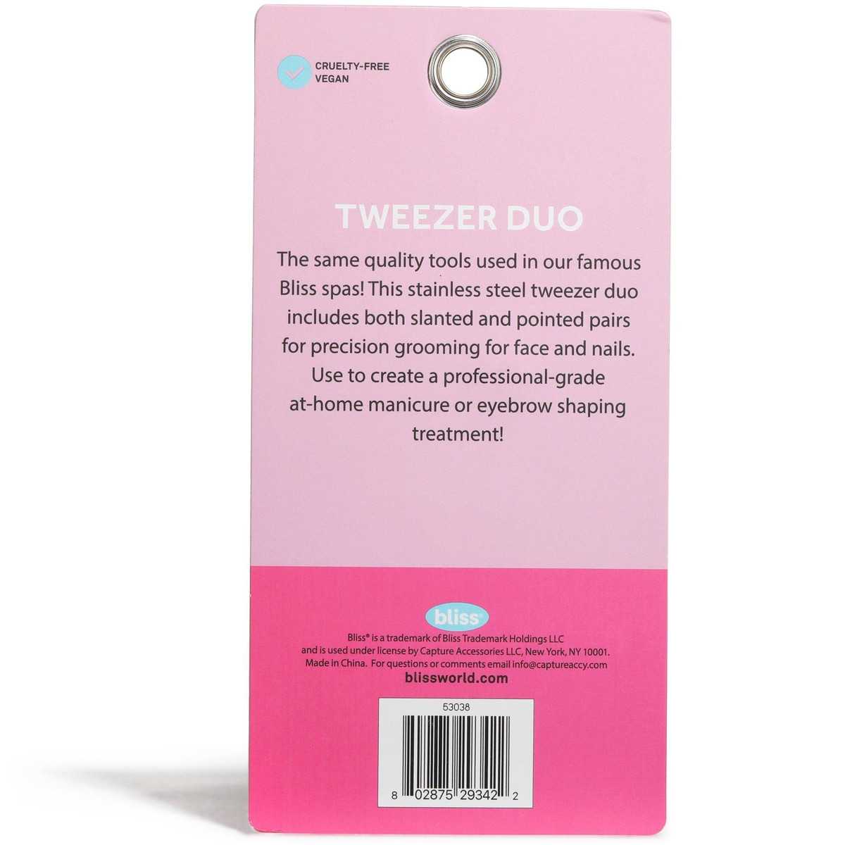 This set features two stainless steel tweezers for every beauty need. The slant-tip tweezer effortlessly shapes the eyebrows and attaches false lashes, while the point-tip tweezer easily removes short facial and body hair. Travel-friendly.
