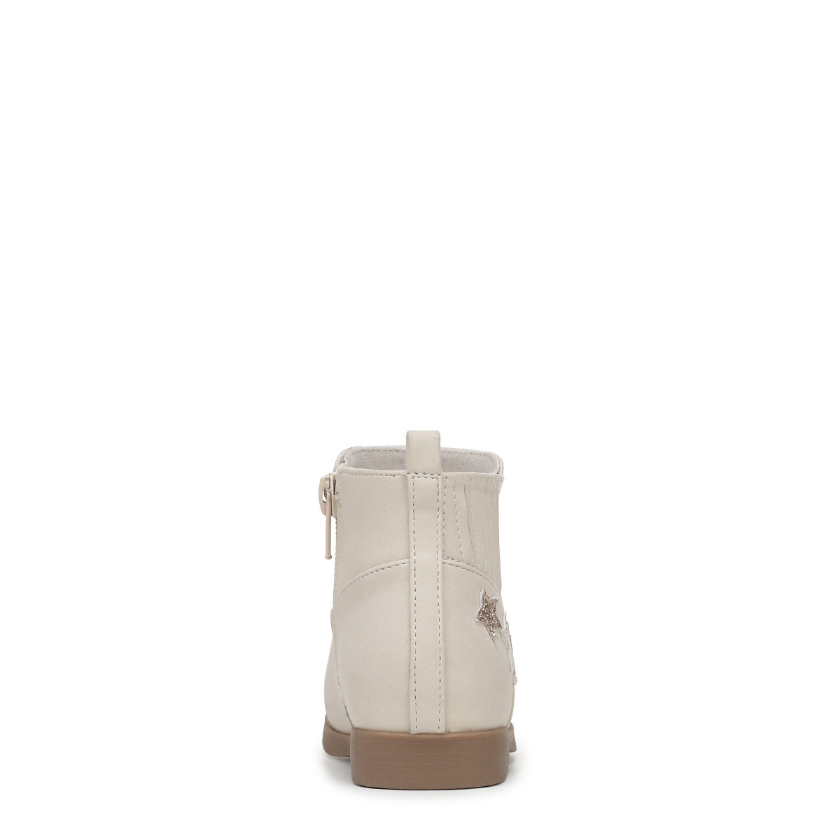 The Blowfish Malibu Toddler Girls Starling-T Bootie brings sparkle to every step! With glitter star accents, Western-inspired style, and a comfy stretch panel, this faux leather boot is perfect for school or fashion-forward fun. An inside zipper makes it easy to slip on and go.