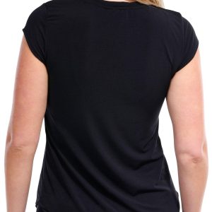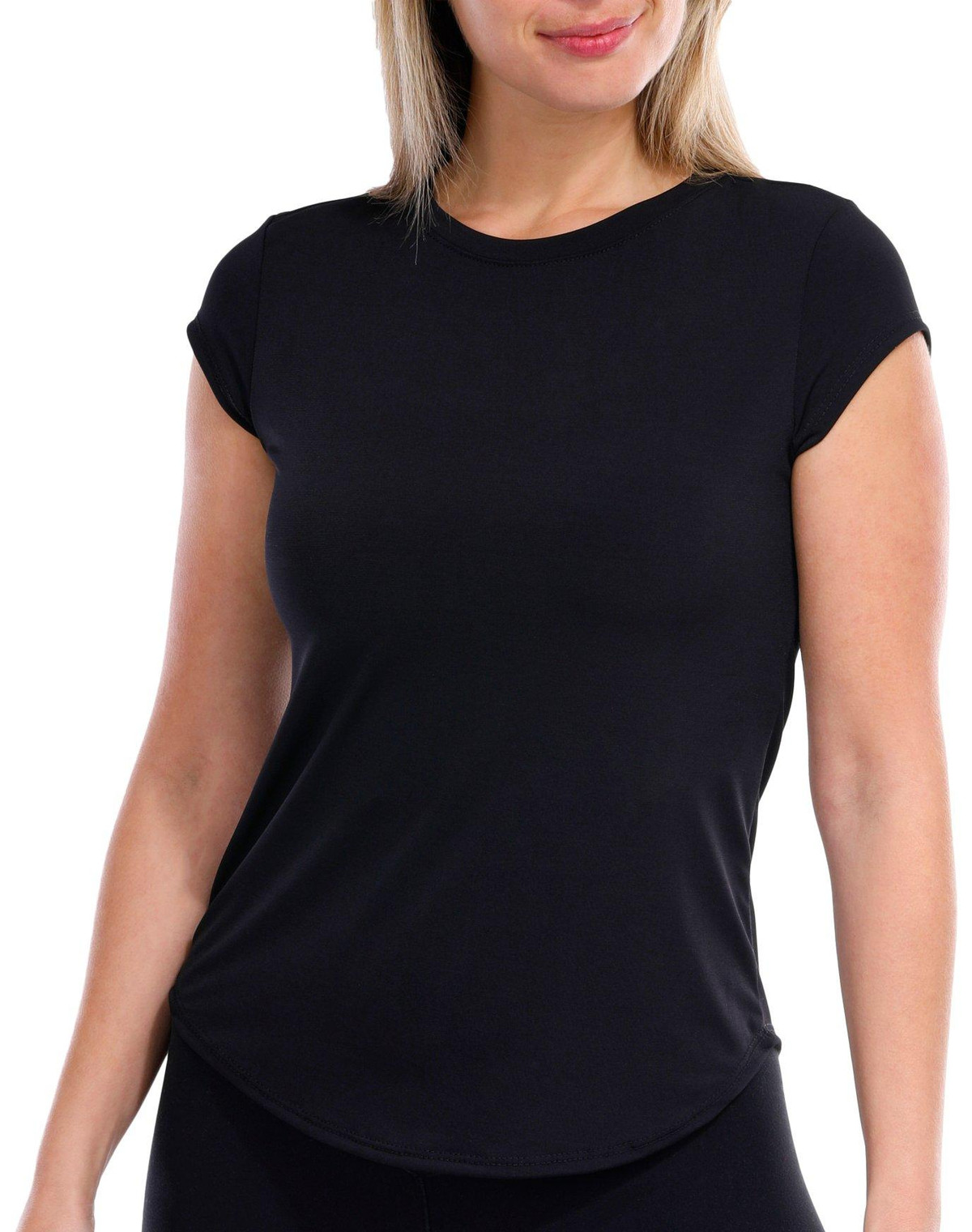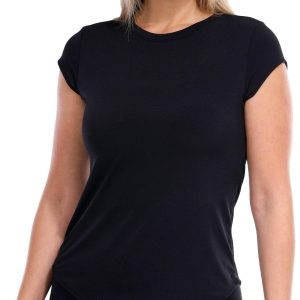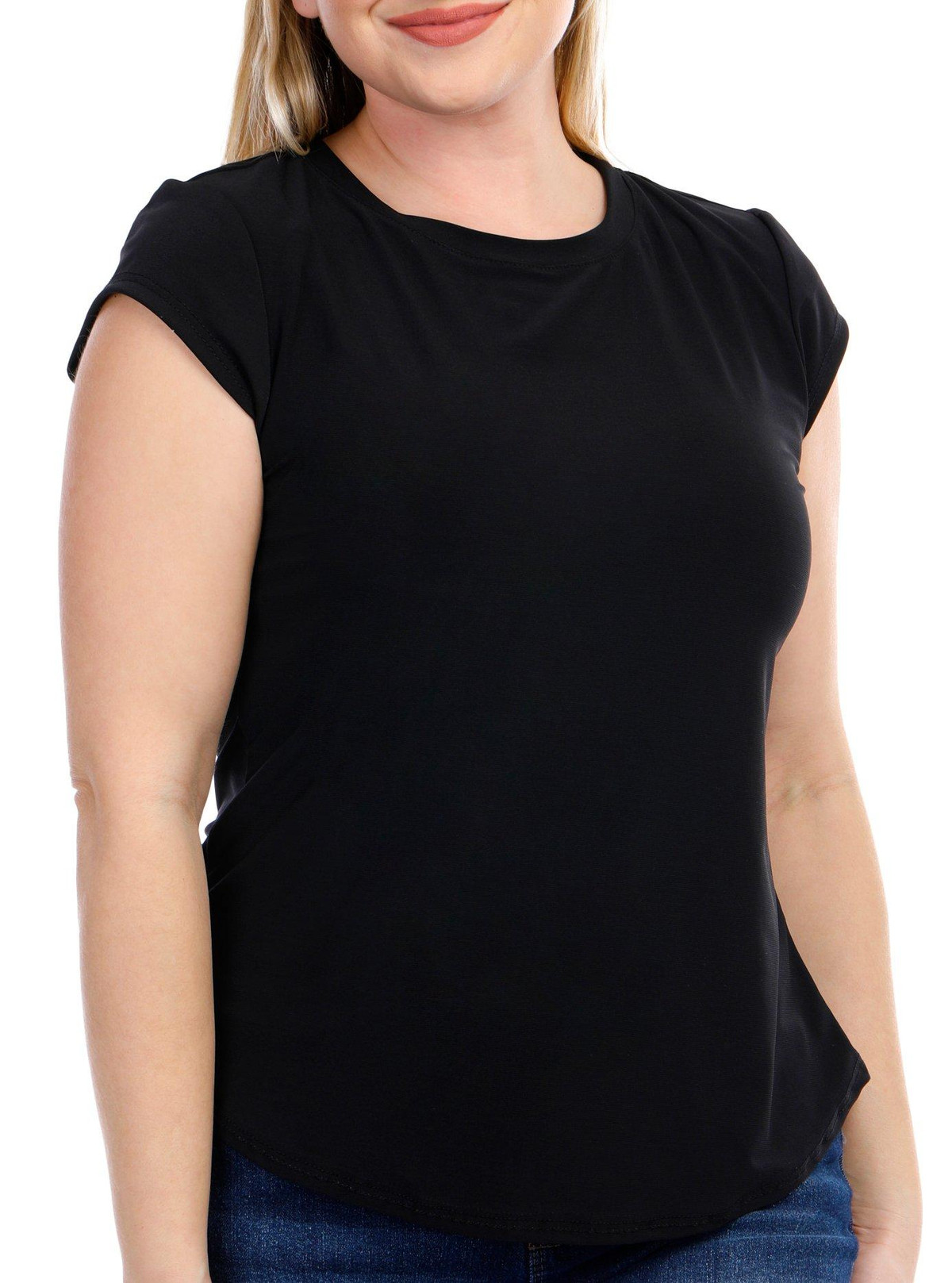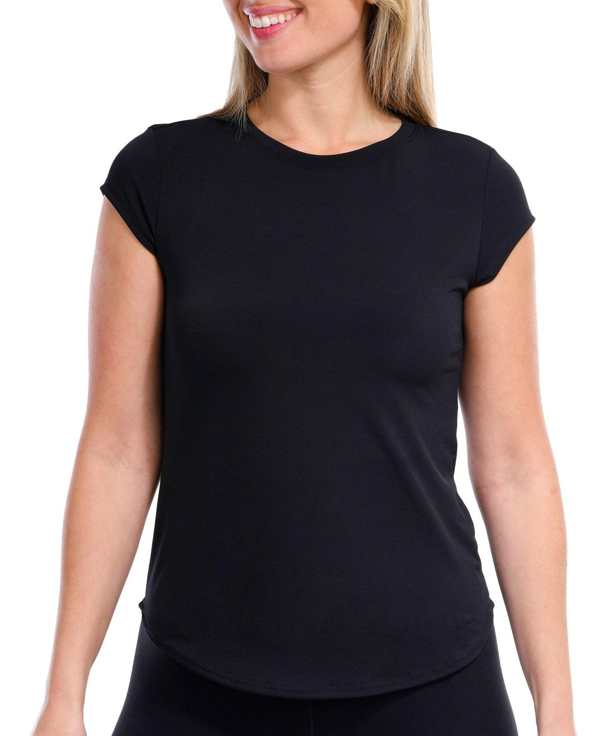 Elevate your everyday style with our womens short cap sleeve solid color top. Crafted from a stretchy blend of 96% polyester and 4% spandex, this top offers both comfort and flexibility. The round neckline adds a classic touch, making it perfect for pairing with jeans or skirts. Whether youre dressing up for a special occasion or keeping it casual, this floral top is a versatile addition to your wardrobe. Top length is 25 inches.
