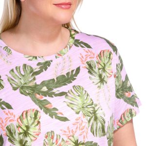 Embrace the essence of summer with the Baja Tropical Short Sleeve Luxey Tee. Featuring a flattering scoop neckline and a vibrant tropical print, this tee is perfect for warm weather and sunny days. Made from soft, breathable fabric, it ensures all-day comfort and ease. Whether you’re heading to the beach or a casual outing, this tee adds a touch of tropical flair to your wardrobe. Top length measures approximately 26 in. Fabrication is 60% cotton and 40% modal.