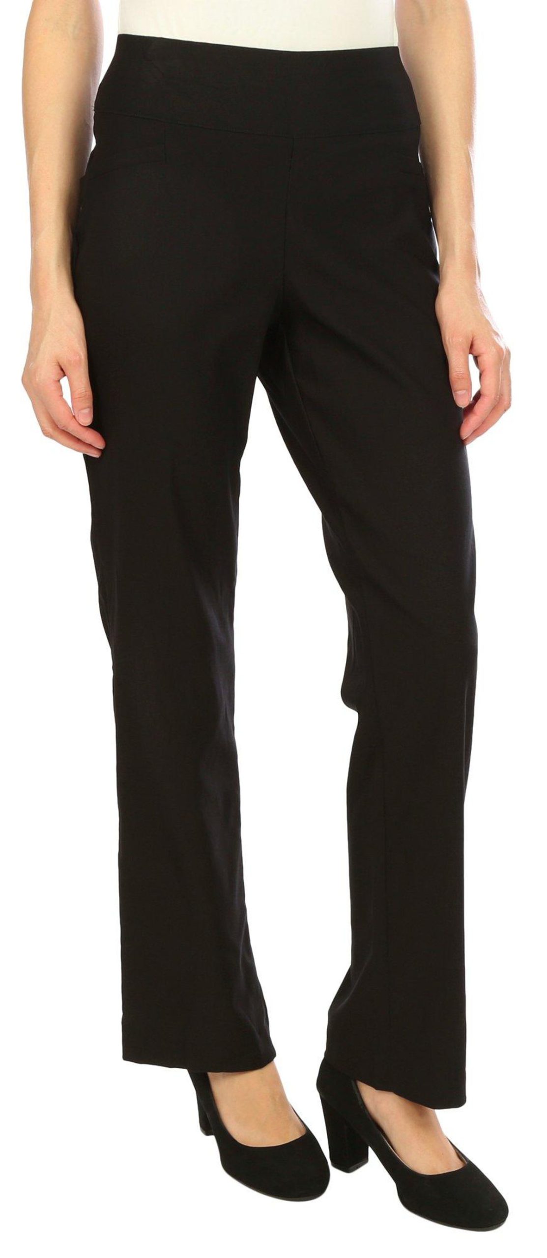 Step into effortless style and comfort with our Solid Bootcut Compression Pants. Crafted from a premium blend of fabrics, these pants offer a perfect balance of stretch and structure, ensuring a flattering fit for all body types. The classic bootcut silhouette elongates the legs, while the solid color provides versatility for any wardrobe. The inseam measures approximately 31.5 in. Fabrication 80% rayon, 17% nylon, and 3% spandex.