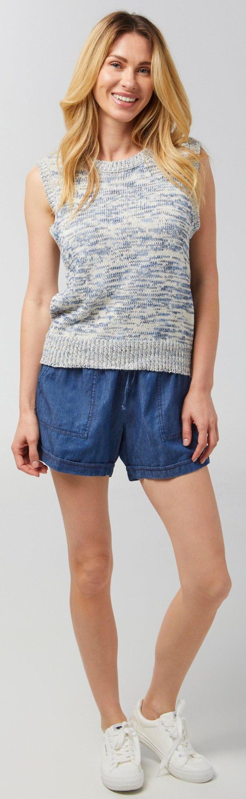 Introducing our Women’s Space Dye Sweater Vest, crafted from a blend of cotton, polyester, and nylon. This stylish vest features a unique space dye pattern and a 24-inch length, making it a perfect layering piece for any season. With its modern design and comfortable fit, this sweater vest adds a touch of sophistication to your wardrobe, ideal for both casual and dressy occasions. Fabrication is 54% Cotton, 28% polyester, 18% Nylon.