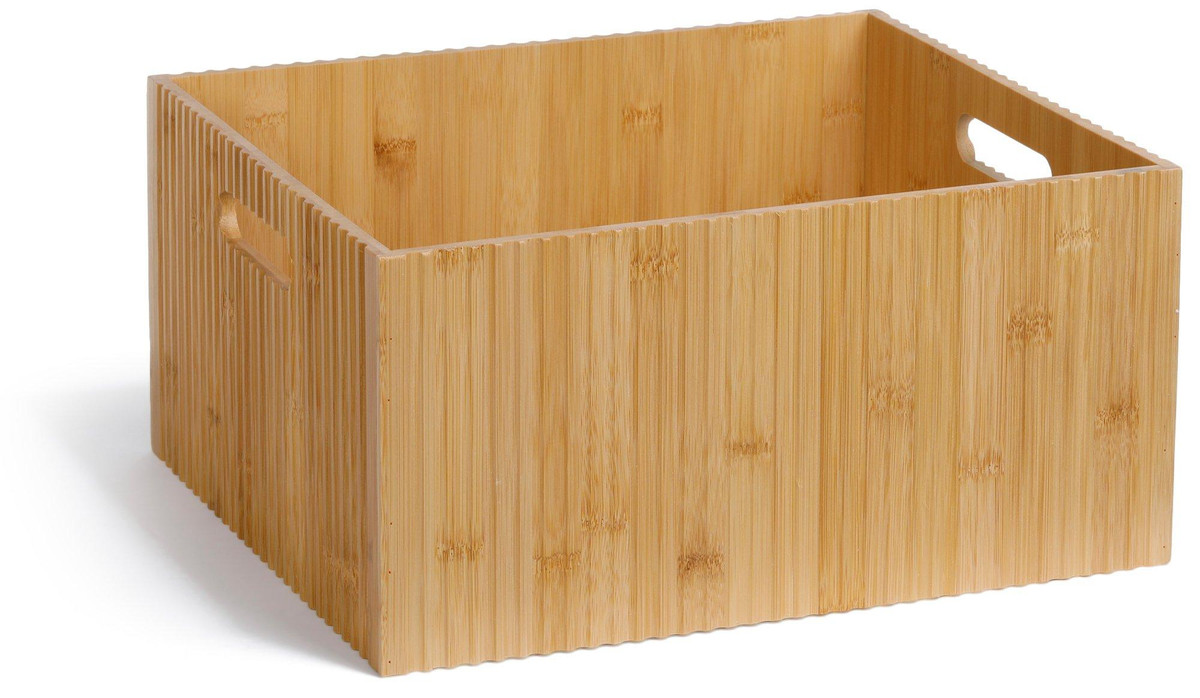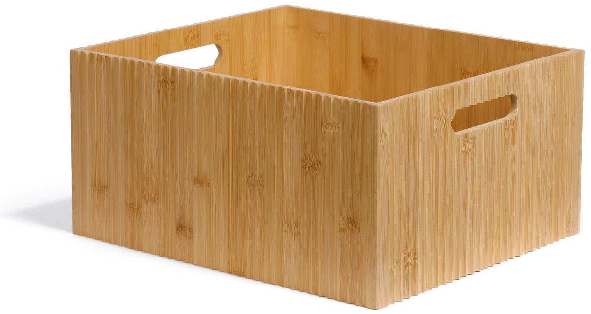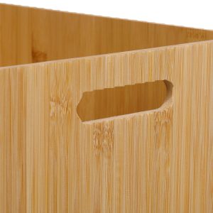 This practical bamboo storage bin with natural accents is a perfect combination of traditional craftsmanship and rustic charm. This piece is made from strong all natural bamboo material, making it a versatile addition to your living space. Perfect for storing blankets in the living room, toys in a child’s room, or supplies in the office, this bin is a versatile solution to keep your space tidy and organized. Measures 13.5 in. x 11.5 in x 7 in.
