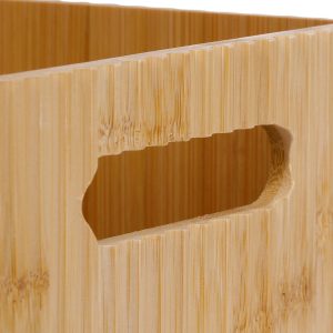 This practical bamboo storage bin with natural accents is a perfect combination of traditional craftsmanship and rustic charm. This piece is made from strong all natural bamboo material, making it a versatile addition to your living space. Perfect for storing magazines in the living room, toys in a child’s room, or supplies in the office, this bin is a versatile solution to keep your space tidy and organized. Measures 11.5 in. x 8.5 in x 6 in.