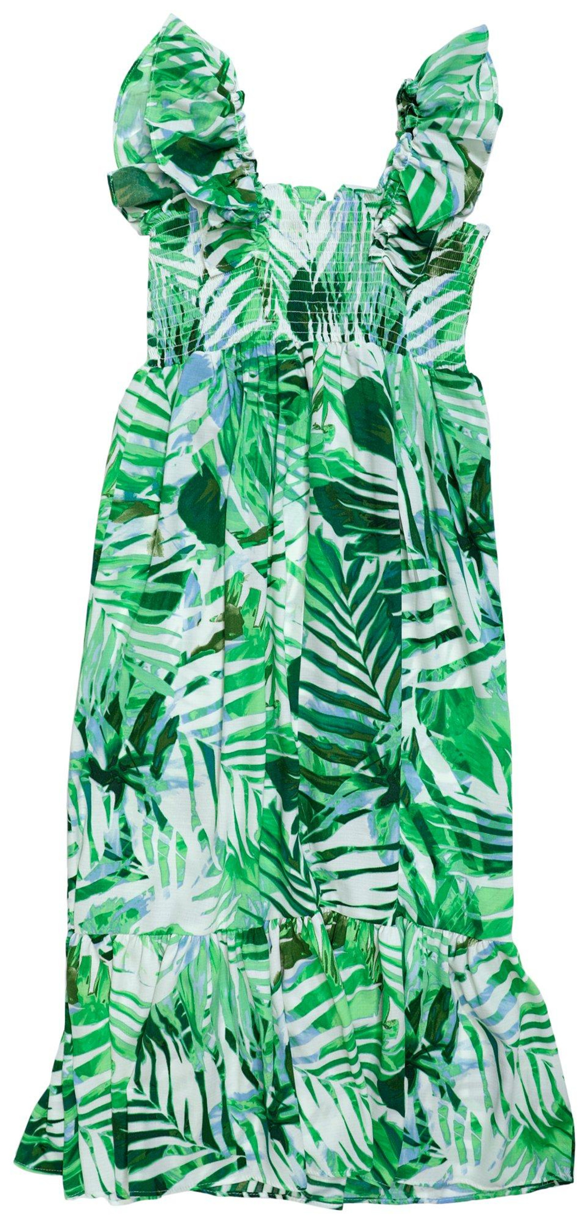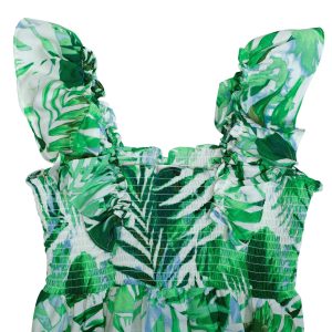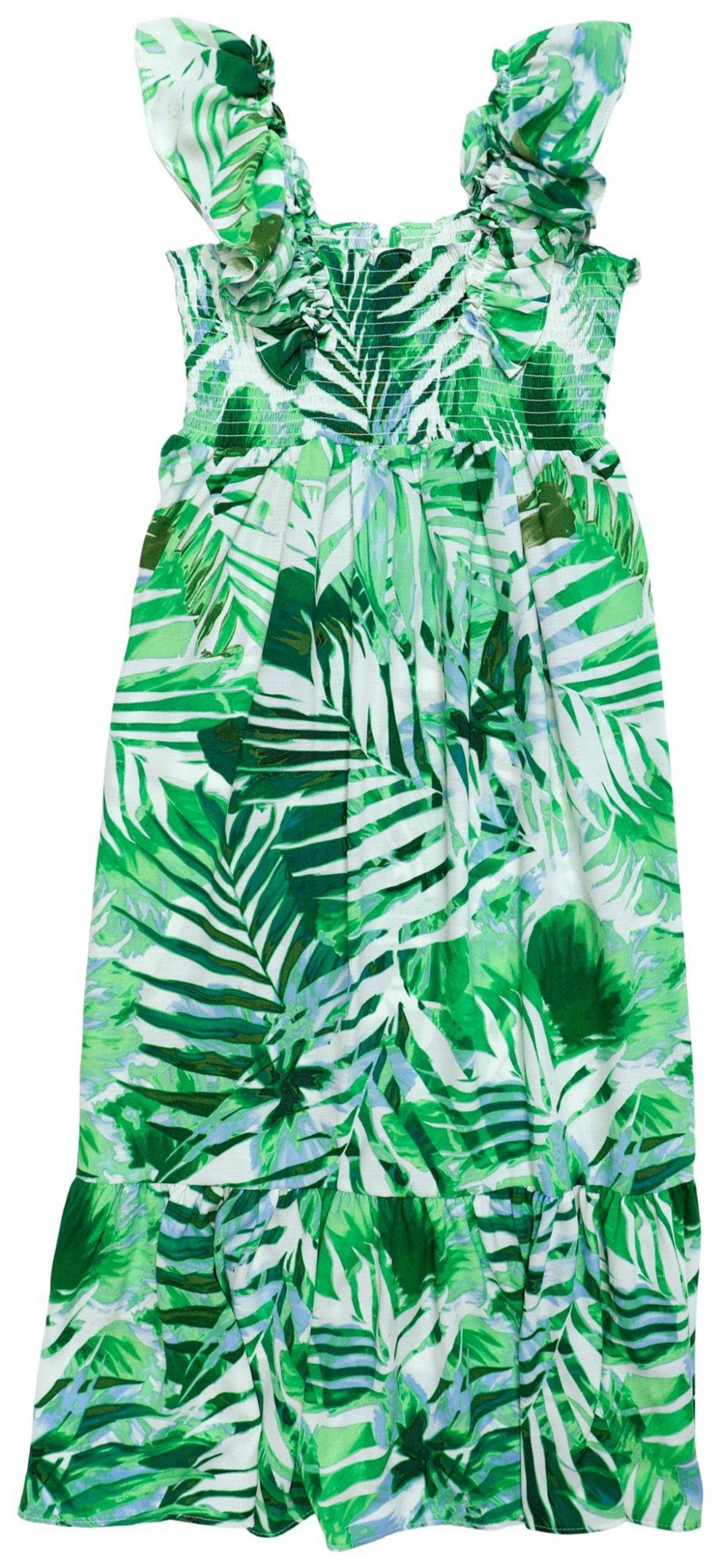 This sleeveless Bonnie Jeans smock sundress is a stylish choice for big girls who love effortless elegance. Featuring a chic green leaf pattern, its perfect for Easter, family gatherings, or Sundays best. The smocked bodice provides a flattering fit, while the breezy fabric keeps it comfortable for all-day wear. Pair it with a classic denim jacket for a trendy layered look thats perfect for cooler evenings or a casual yet polished vibe!