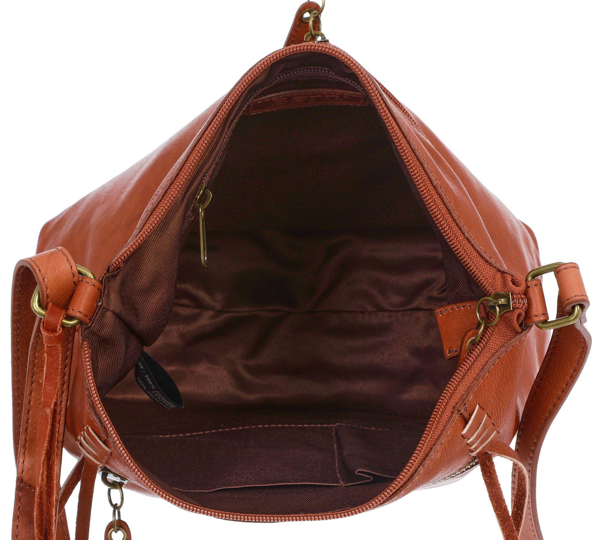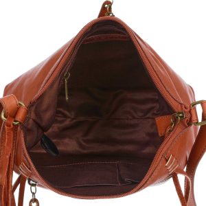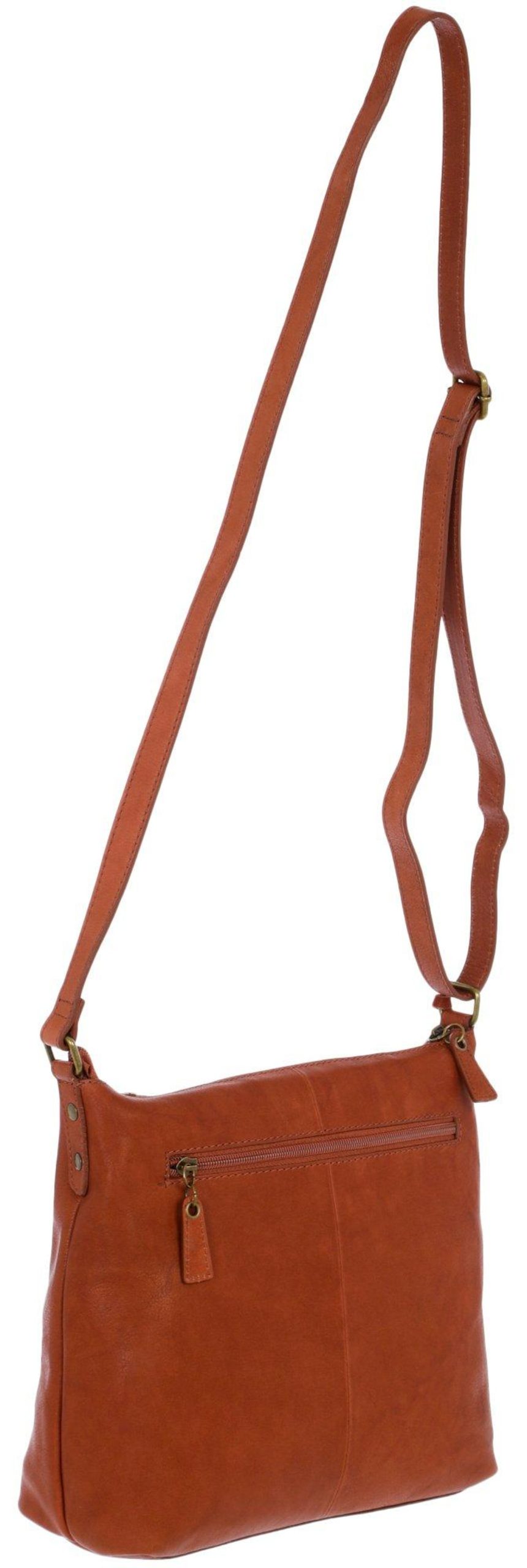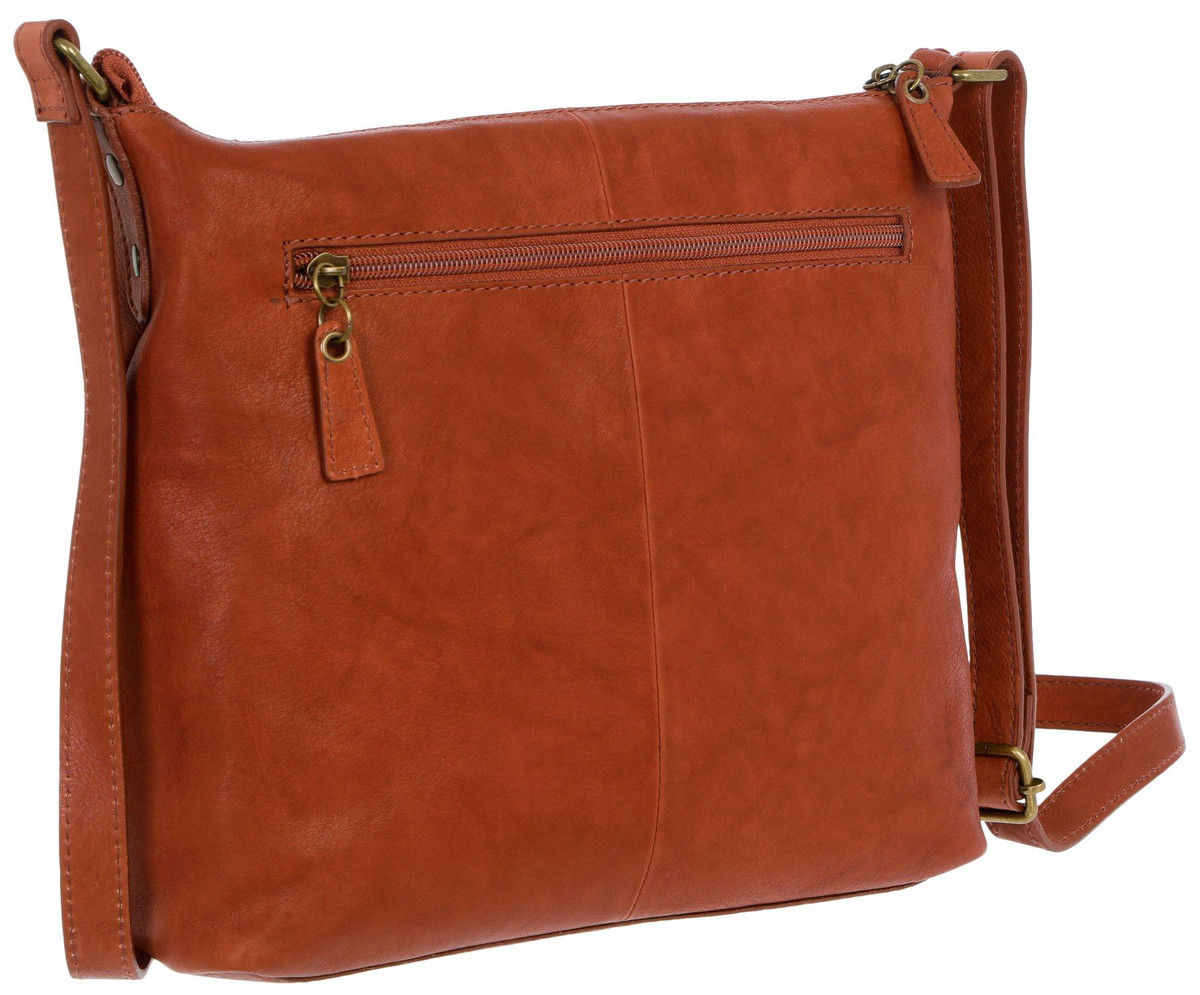 Complete your look with our Genuine Leather Large Crossbody Bag! It features a stylish solid genuine leather exterior – great for mixing and matching with outfits, an adjustable crossbody strap, bronze tone hardware, a top zip compartment with inner slip and zip pockets, and two exterior zip pockets. Measures 10 x 9 in.