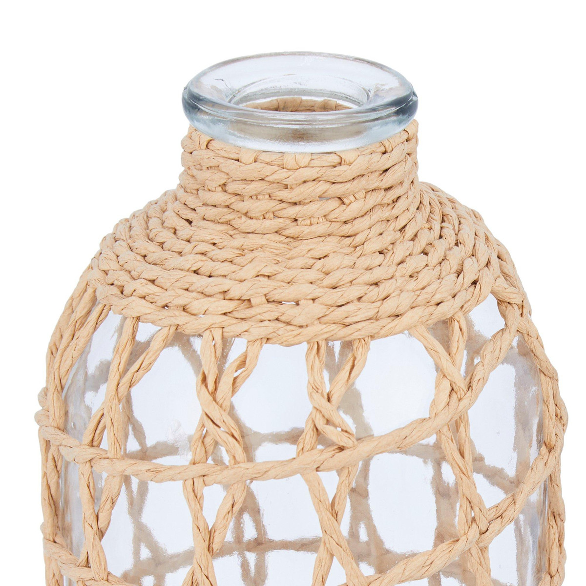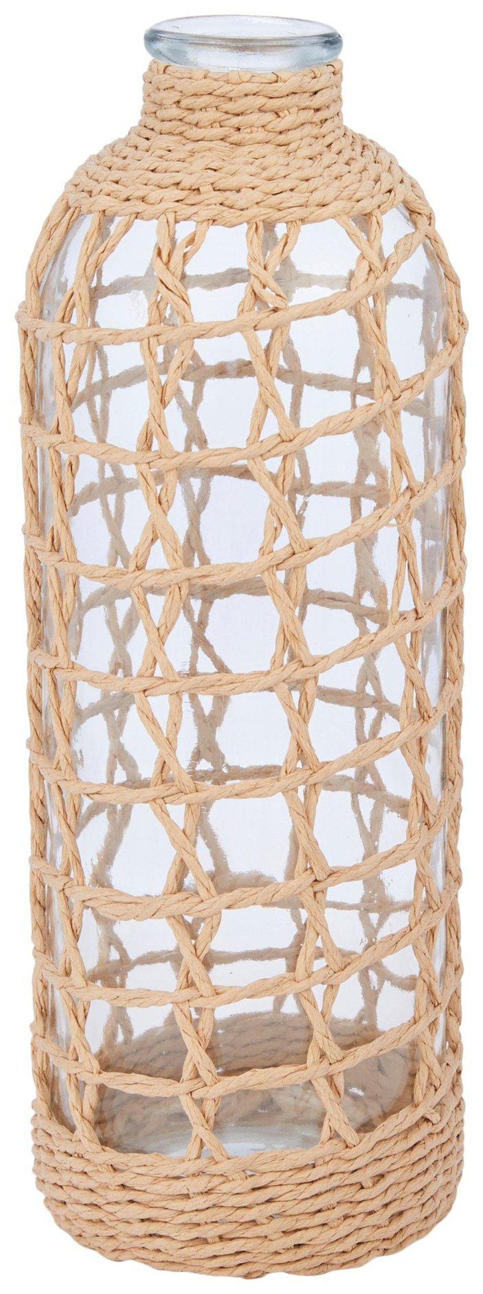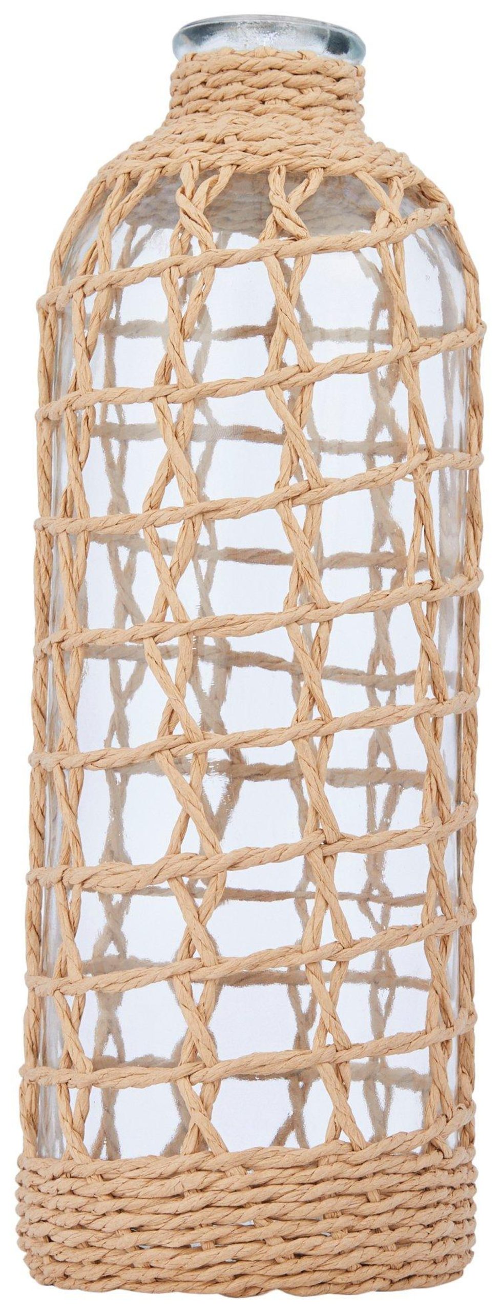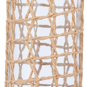 Bring a touch of coastal decor to any room with this elegant glass vase with rope accents. It’s perfect for transforming your home or condo into a beach-inspired retreat. It makes a beautiful accent or a thoughtful gift. Measures approximately 13 in x 4.5 in.