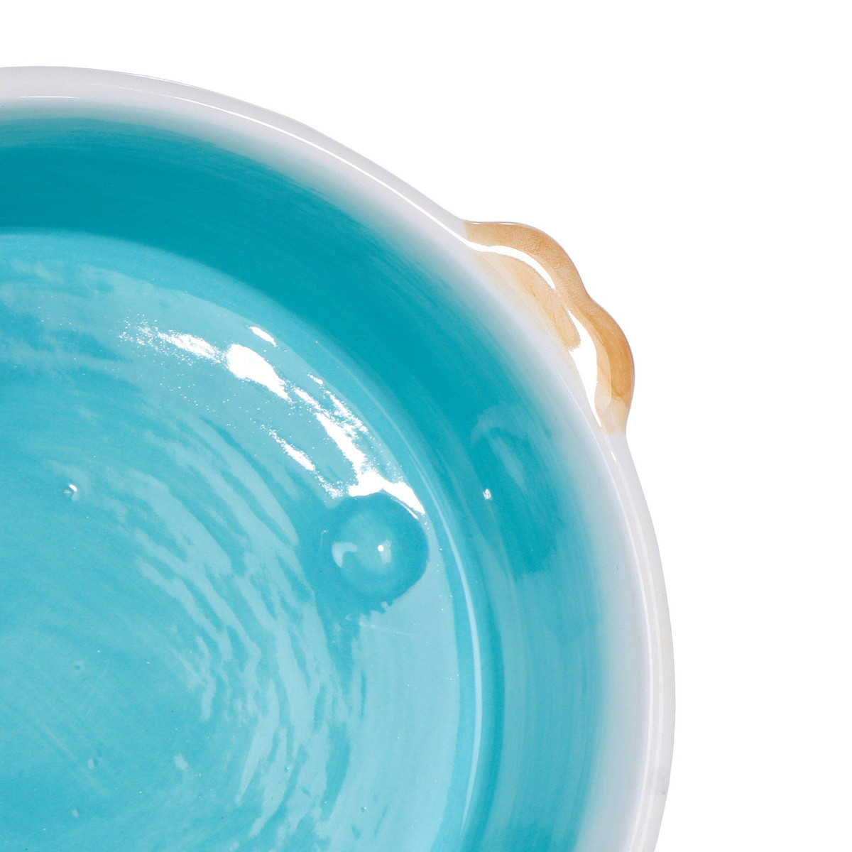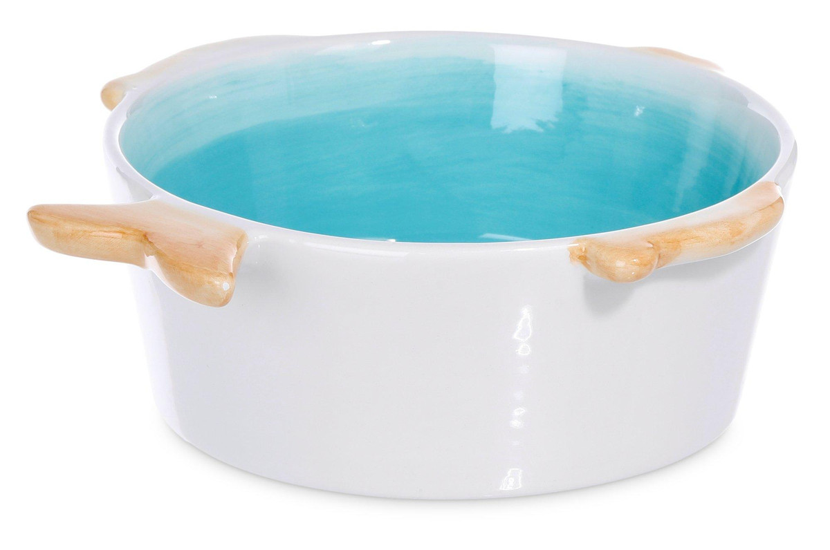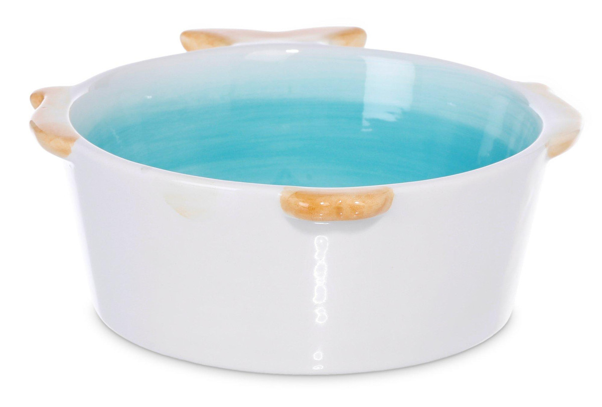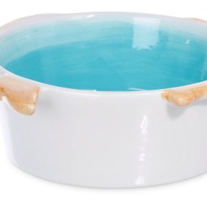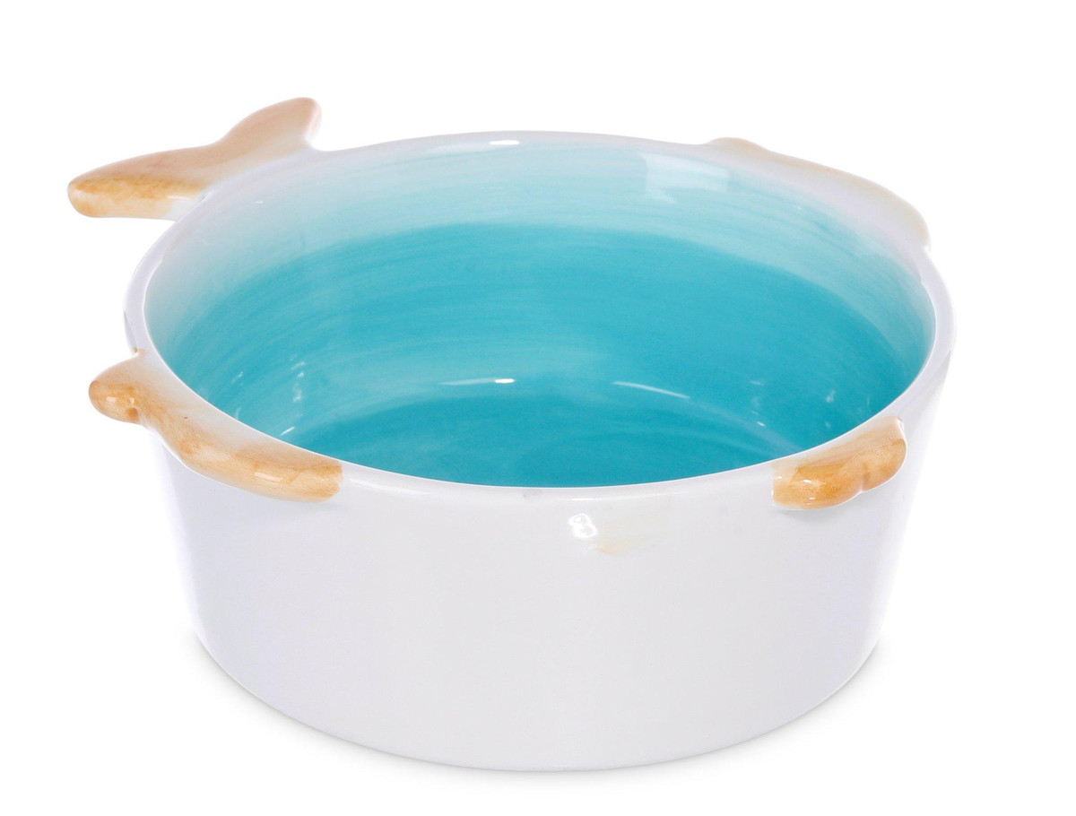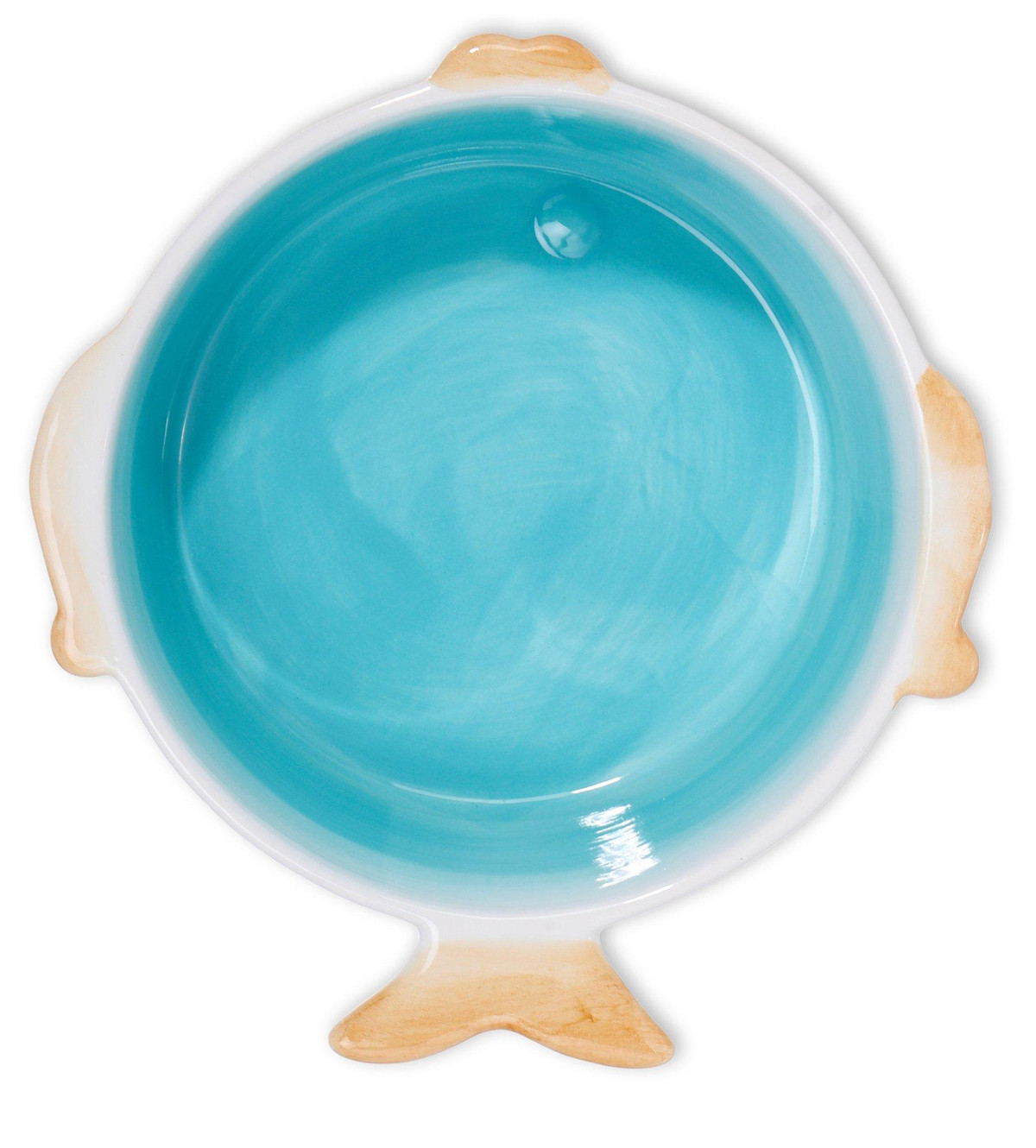 This fish bowl exudes a serene coastal vibe, ideal for those who appreciate aquatic beauty. The combination of turquoise, white, and brown mimics the sand, sea, and gentle waves, making it a perfect centerpiece for a beach-themed decor. Measures: 7” L x 6 ” W x 2.5” H
