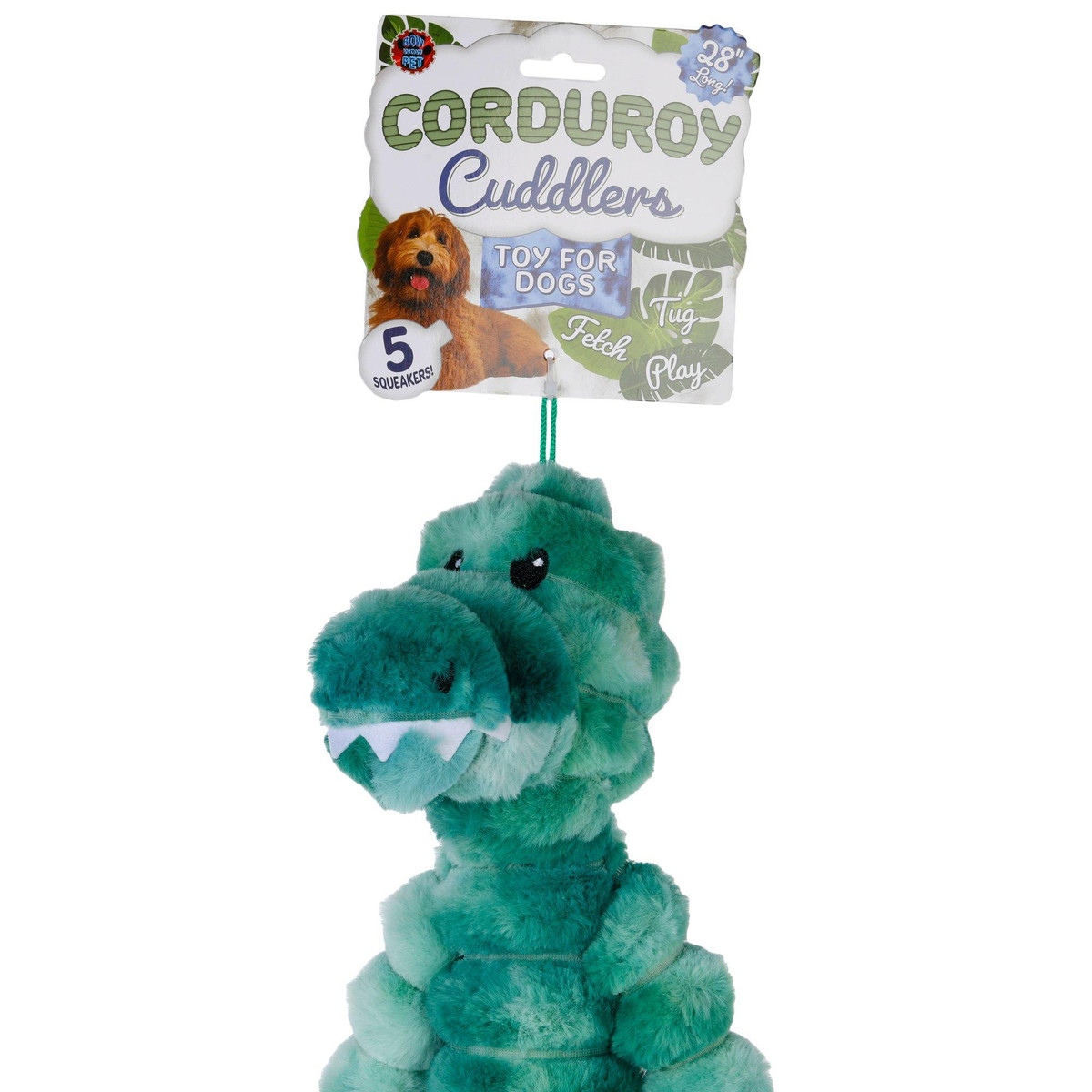 Built for interactive fun, this plush dinosaur dog toy features extra-long arms perfect for tug-of-war sessions. Vibrant fabric and embroidered eyes offer safe, worry-free play, while squeakers in the head and arms keep pups engaged. Great for tossing, tugging or snuggling during downtime. Measures approximately 28 inches.