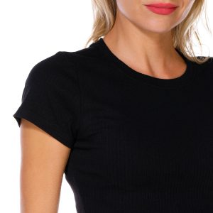 BOZZOLO offers chic casual designs in vibrant colors and stylish prints. This top features a solid color design on soft lightweight ribbed stretch knit fabric, short sleeves, a crew neckline, and crop styling. Measures approximately 18 in. The fabrication is 57% cotton, 38% polyester, and 5% spandex.