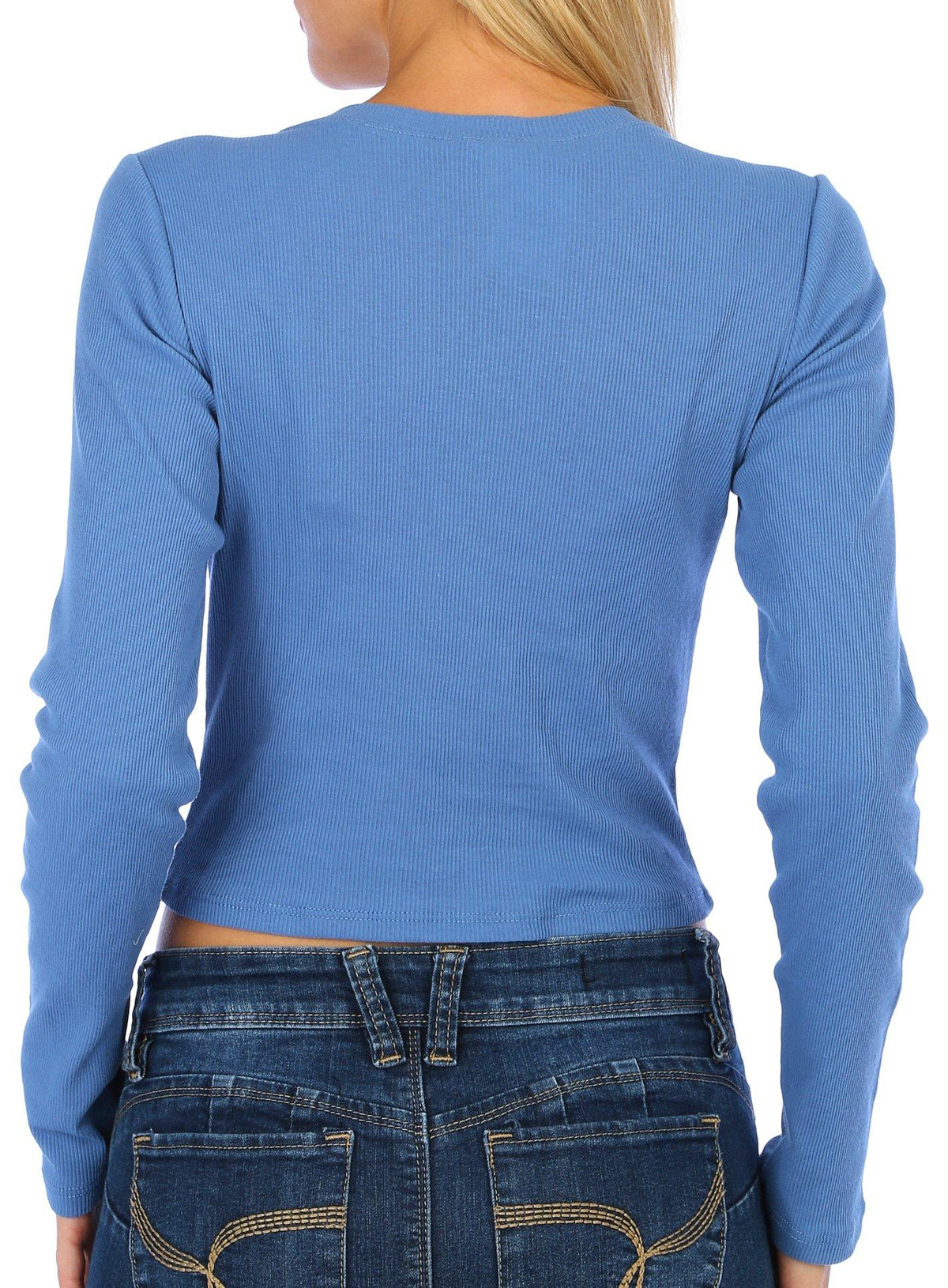 Mix and match with this stylish solid-color long sleeve top to create your new favorite outfits! It features ribbed fabric, a round neckline, and a soft and comfortable fit. Top length measures approximately 16 in.