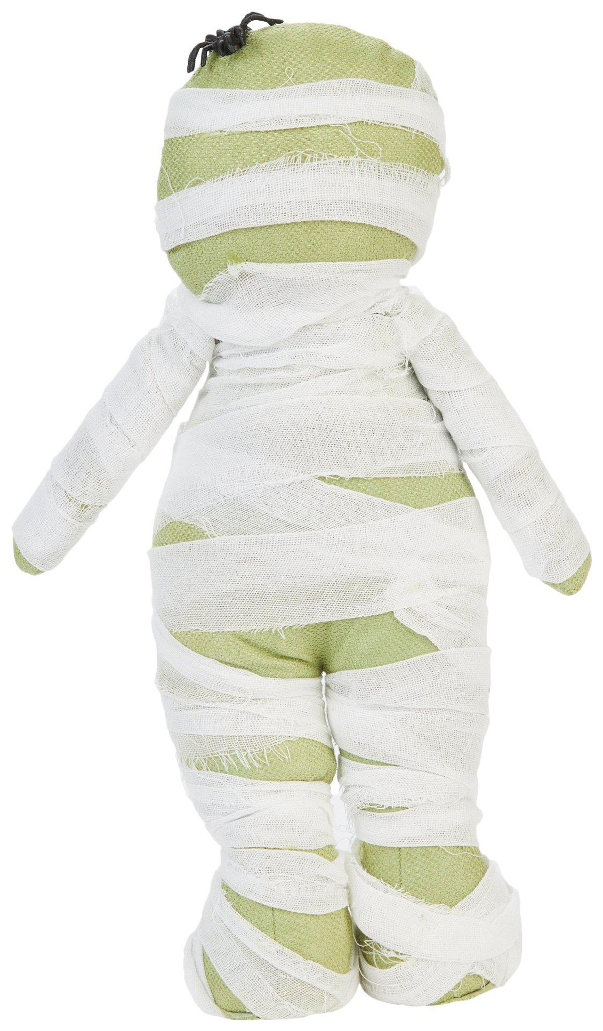 Add eerie charm to your setup with this 18 in Standing Mummy Halloween Decor. Wrapped in textured gauze and detailed with a small spider perched on its head, this figure brings classic Halloween character to mantels, entryways or tabletops. Lightweight and freestanding for easy placement. For indoor seasonal display only. Dust gently to maintain appearance. Measures approximately 18 in x 11 in x 4 in.