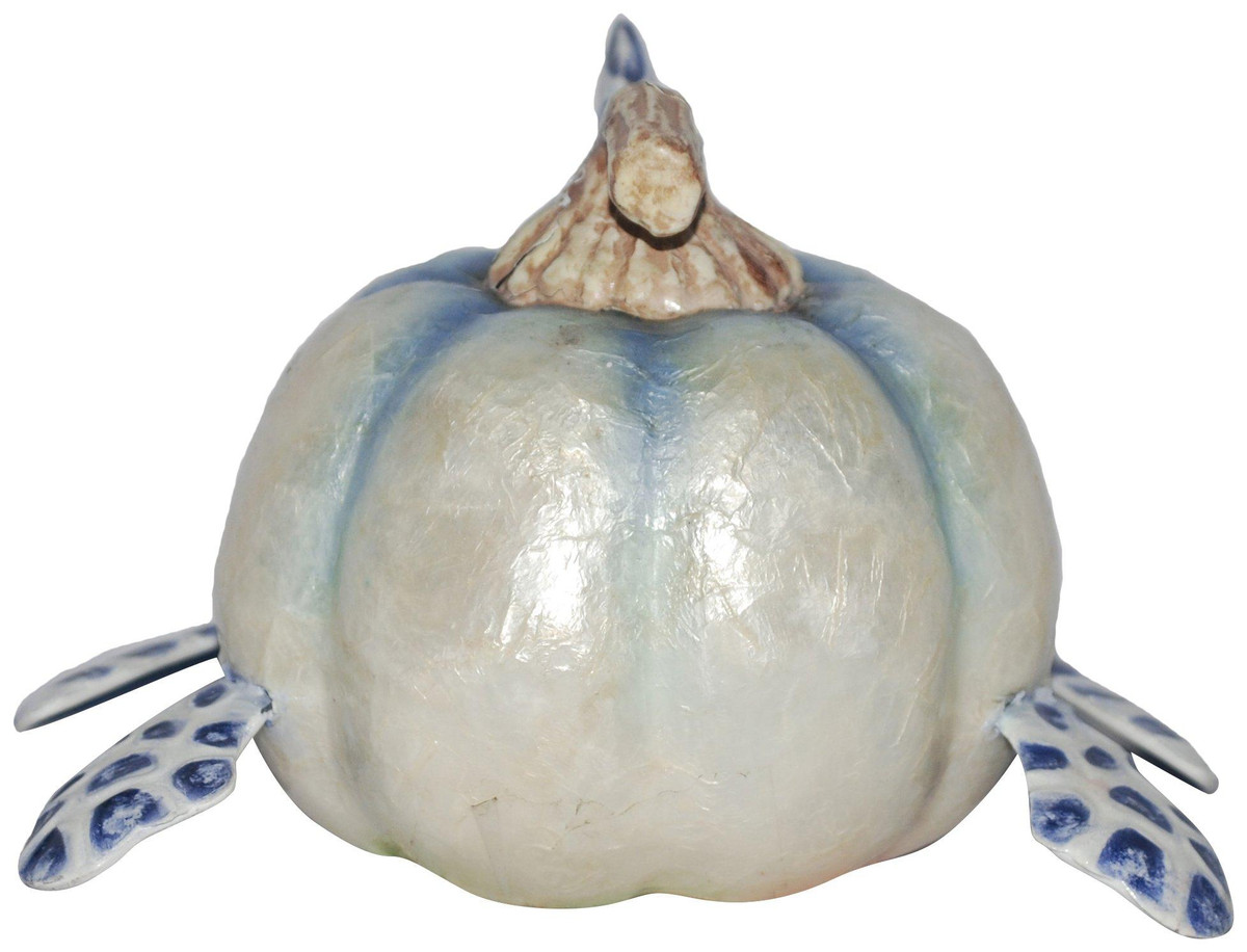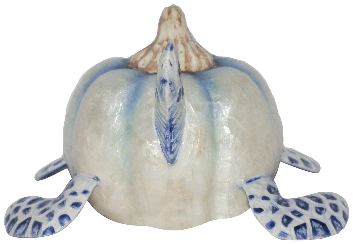 This Harvest themed tabletop décor features a solid color pumpkin base with baby turtle details. Measures approximately 6.25 in. x 5.75 in. x 4 in.