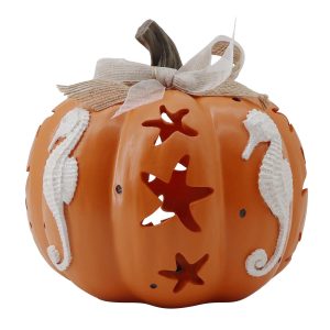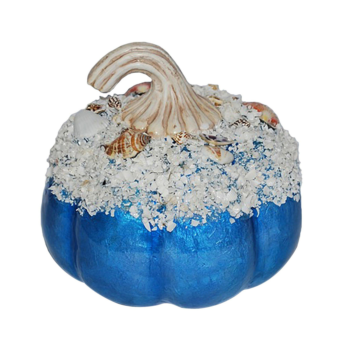This luminescent pumpkin home accent, crafted from shells, adds a coastal touch to your fall décor! Display it on a mantel or console table, or combine it with fresh greens or flowers for a beautiful tablescape. A delightful accent for the holiday season!