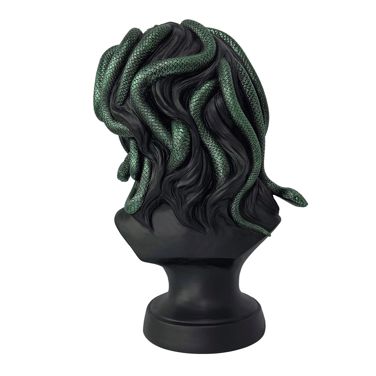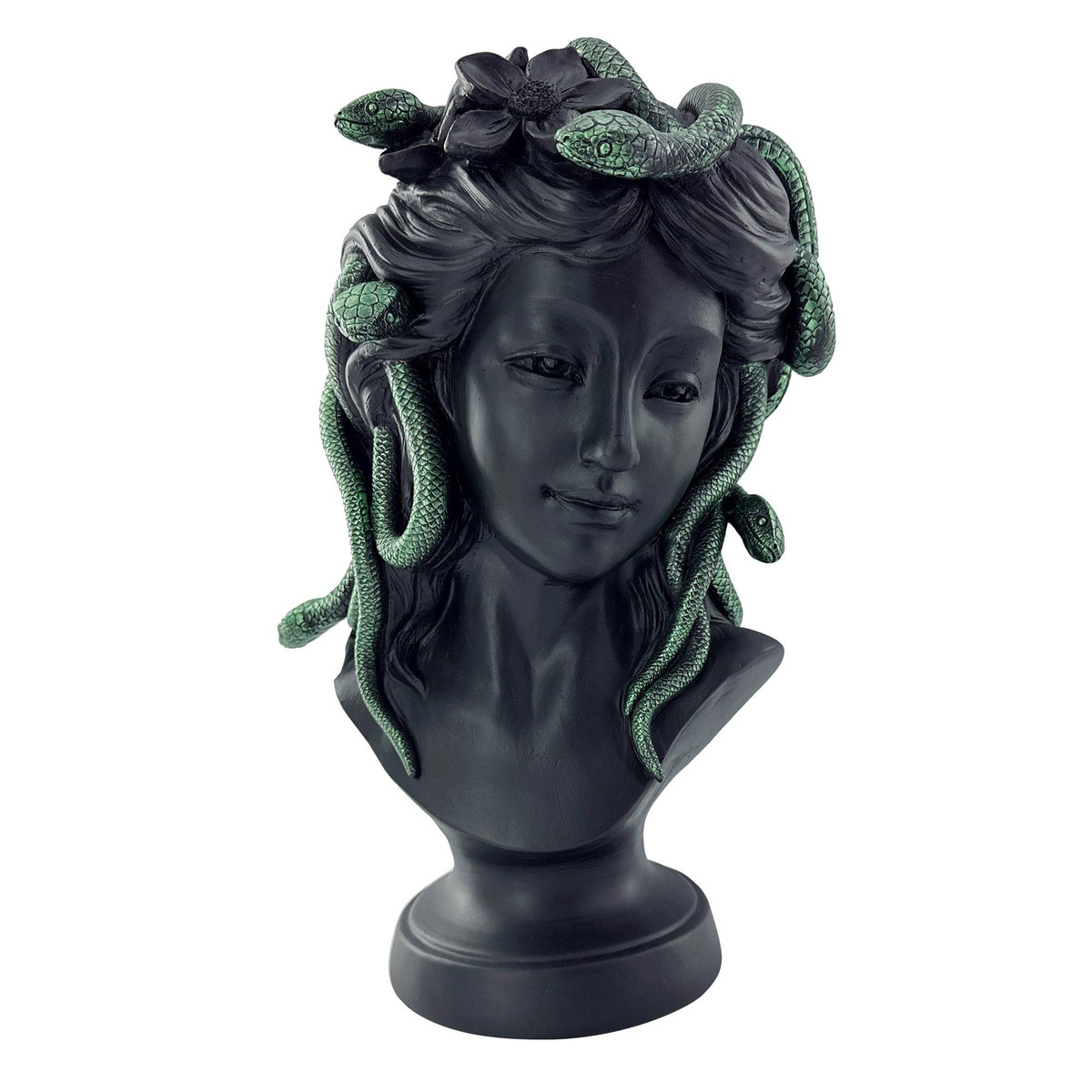 Turn your space to stone with this striking 15 Medusa Bust. Featuring vivid green snakes coiled into her iconic hair and a shadowed face for a mysterious, modern twist, this sculpture blends classical mythology with bold gothic style. A captivating centerpiece for Halloween displays or year-round dark décor lovers. Measures: 10.25in. x 8.25in. x 15in.