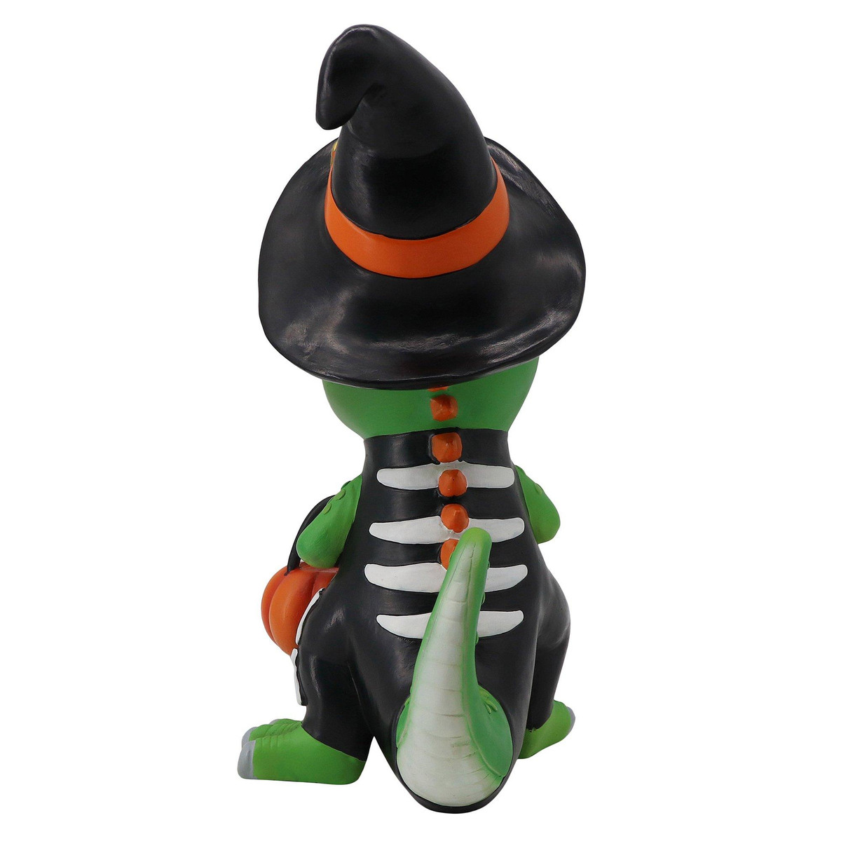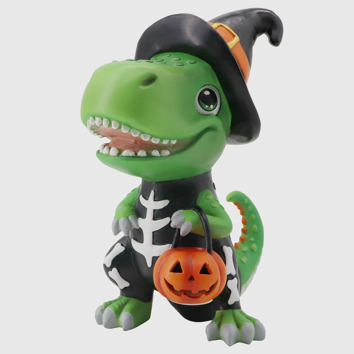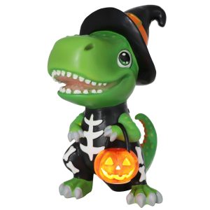 Add a prehistoric twist to your Halloween display with this adorable 12 lighted dinosaur holding a glowing pumpkin lantern. Featuring built-in LED lights that cast an eerie yet playful glow, this inflatable dino is sure to capture attention. Measures 8.7in. x 5.8in. x 12in.