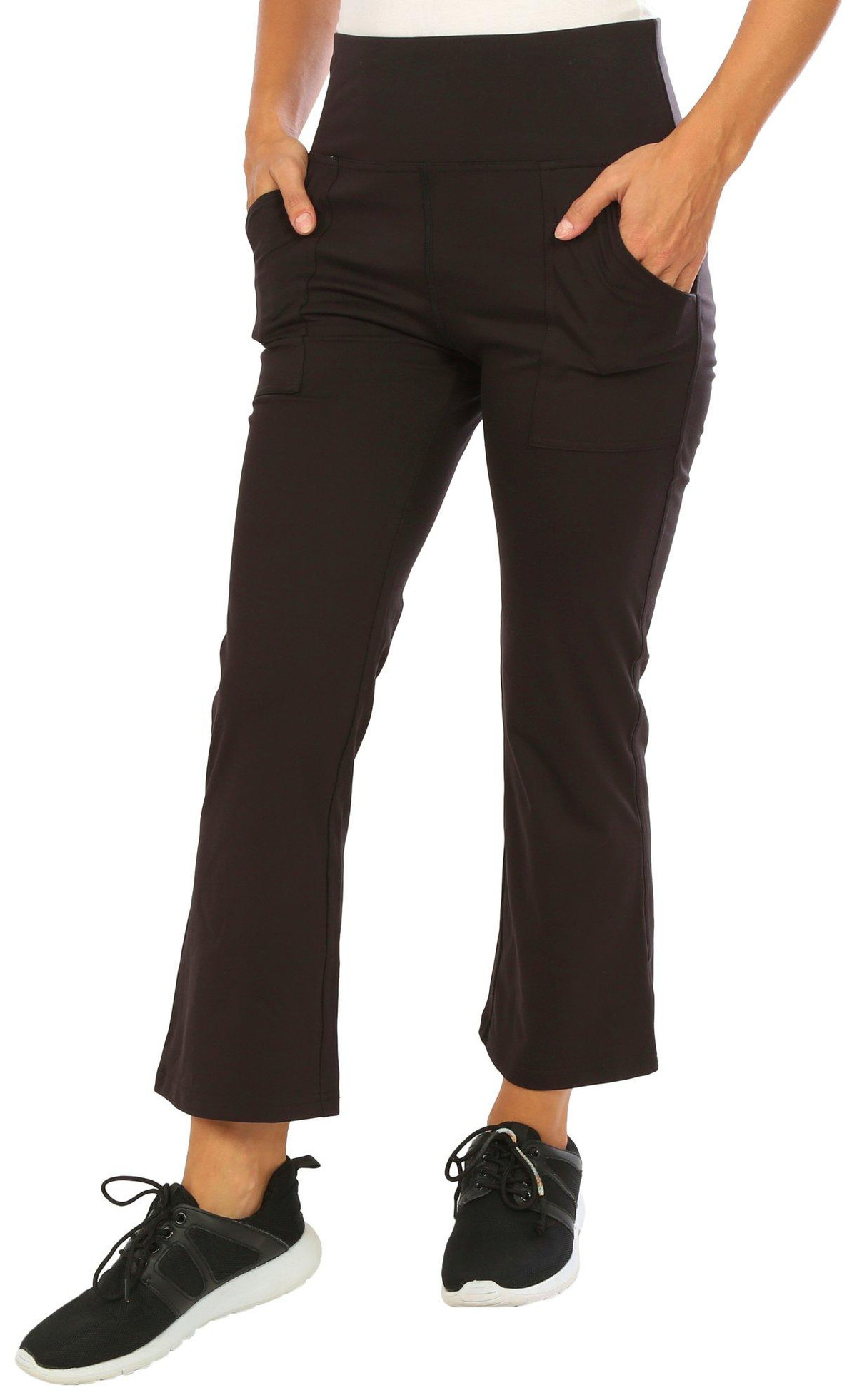 Brisas Active offers comfortable, contemporary, durable activewear. These capris feature a classic solid color design on soft comfortable fabric, a wide elastic waistband, two porkchop pockets, UV protection, and stretch technology. Inseam measures approximately 25 in. Fabrication 81% polyester, 19% spandex.