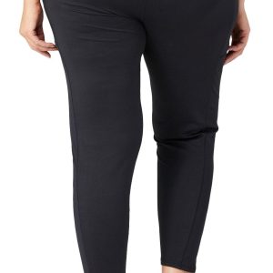 This brand offers comfortable, contemporary, and durable activewear. These ankle joggers feature a classic solid color design on soft comfortable stretch fabric, a wide elastic waistband with a drawstring, two side pockets, and stretch technology. Inseam measures approximately 30 in. Fabrication is 55% Nylon, 36% Rayon and 9% spandex.