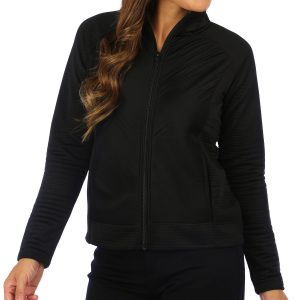 Introducing the Womens Active Wide Otto, a perfect blend of style and functionality. This versatile piece features a chic solid color and ribbed detailing, adding a touch of elegance to your activewear. The full front zip closure ensures easy wear, while the side slip pockets offer convenient storage. Crafted from 100% polyester, it promises durability and comfort. With a length of 21 inches, its designed to provide a flattering fit for all your activities.