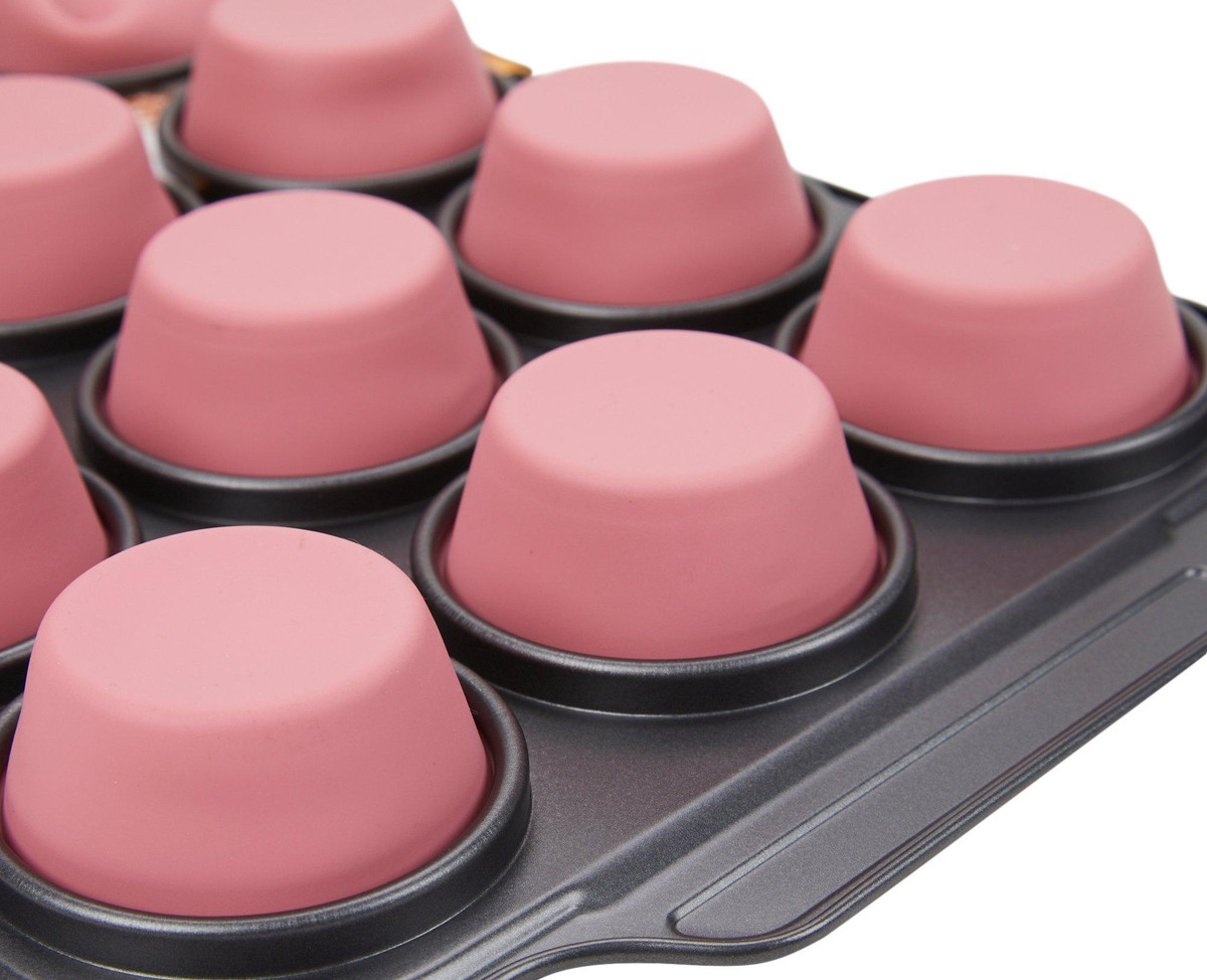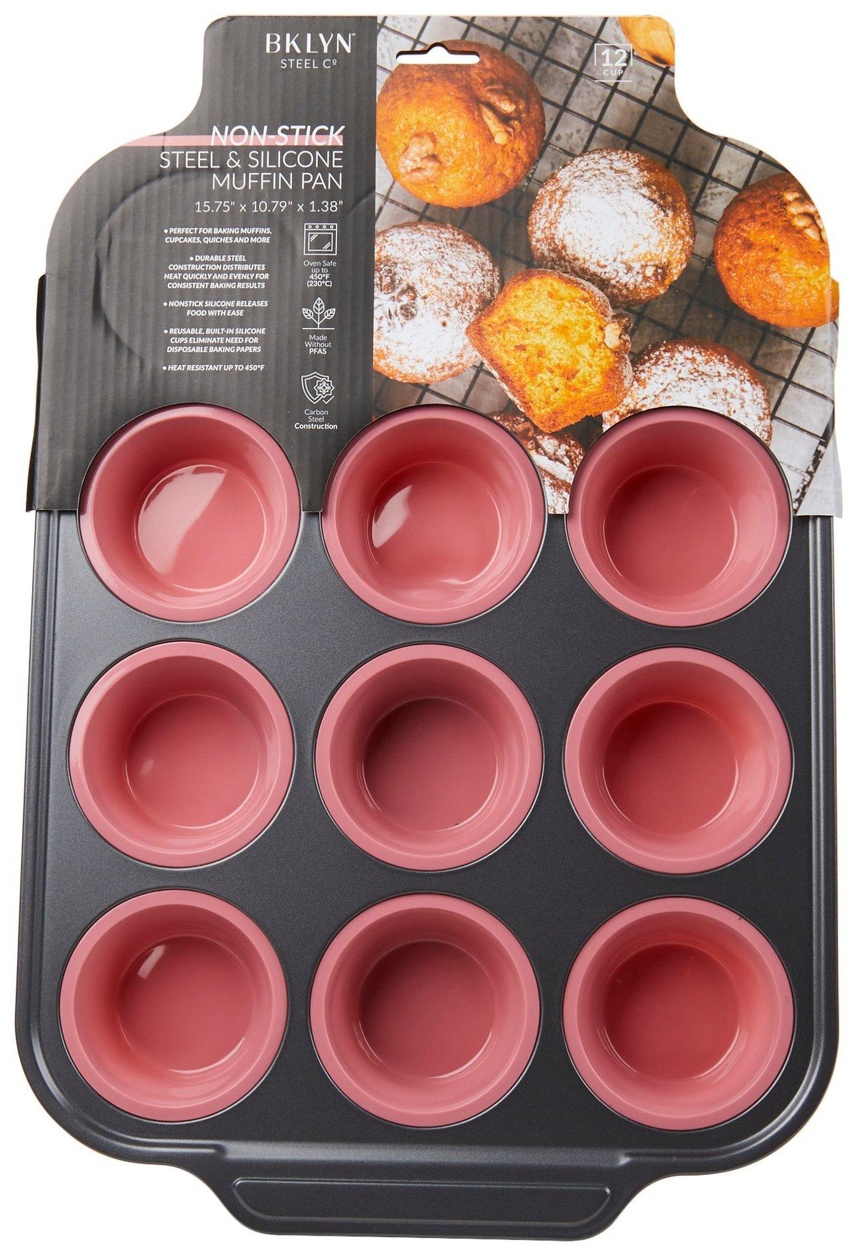 Bake to perfection with the Non Stick Steel and Silicone Muffin Pan. This versatile 12-cup pan is ideal for creating delicious muffins, cupcakes, quiches, and more. The non-stick steel ensures even baking and easy release, while the silicone accents provide a secure grip and added durability. Whether you’re a seasoned baker or just starting out, this muffin pan makes baking a breeze. Measures 15.75 in x 10.79 in x 1.38 in.