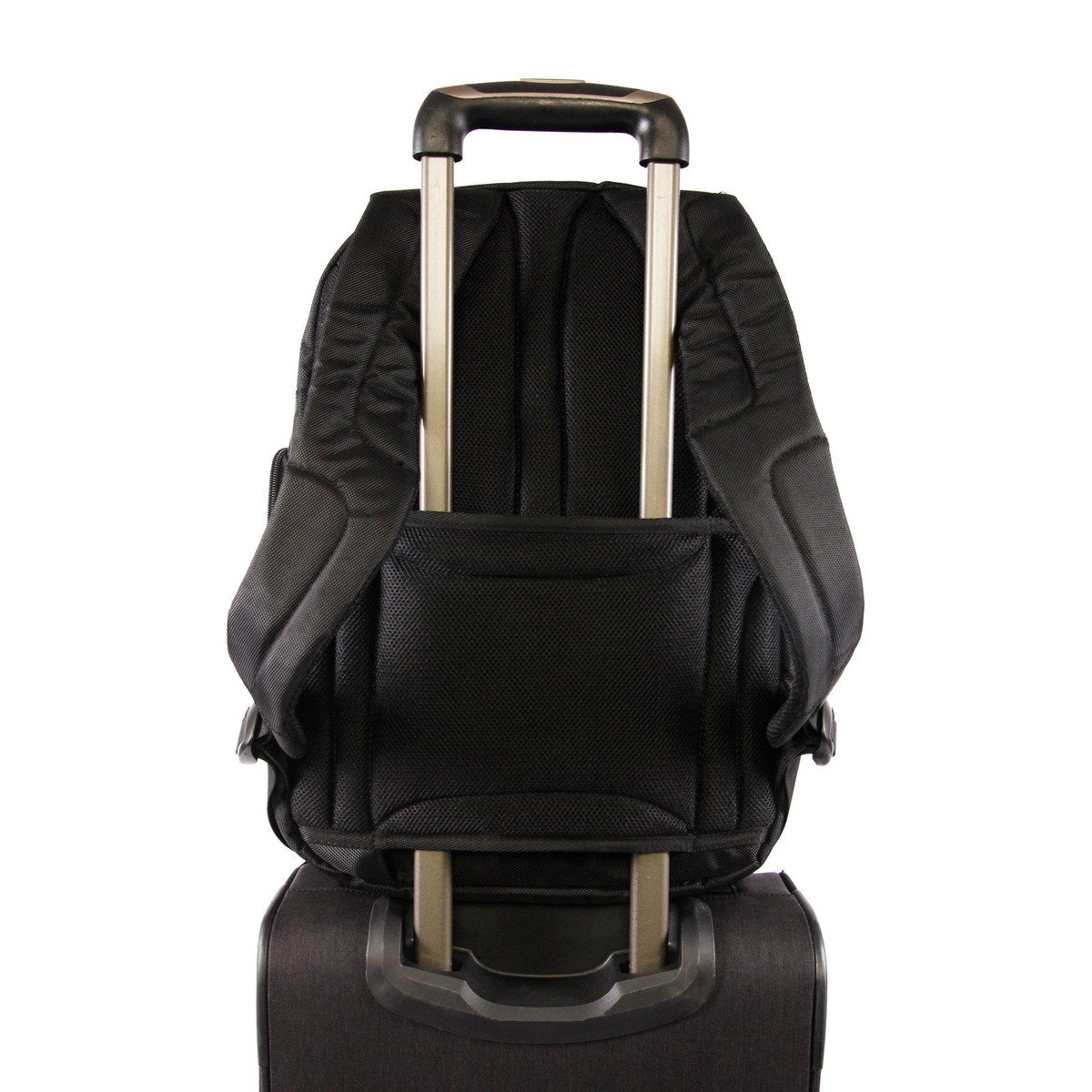 Head off to work or school with your laptop and other must-haves packed safely and stylishly inside this durable Bryce backpack by Brookstone. The backpack features a laptop/tablet compartment, RFID pocket and a luggage trolley back sleeve for easy transportation. Measures 18 in. x 13 in. x 7 in.