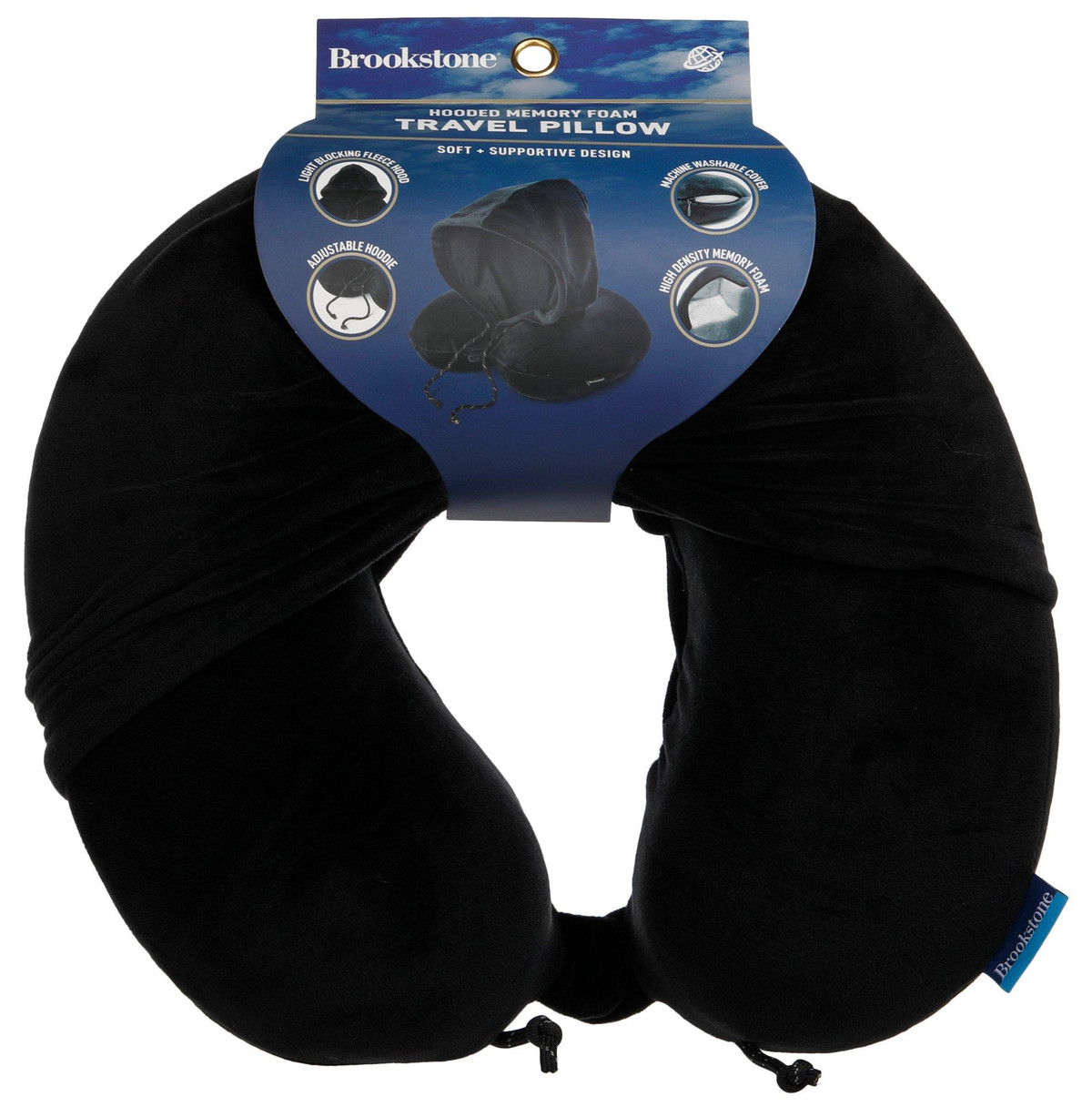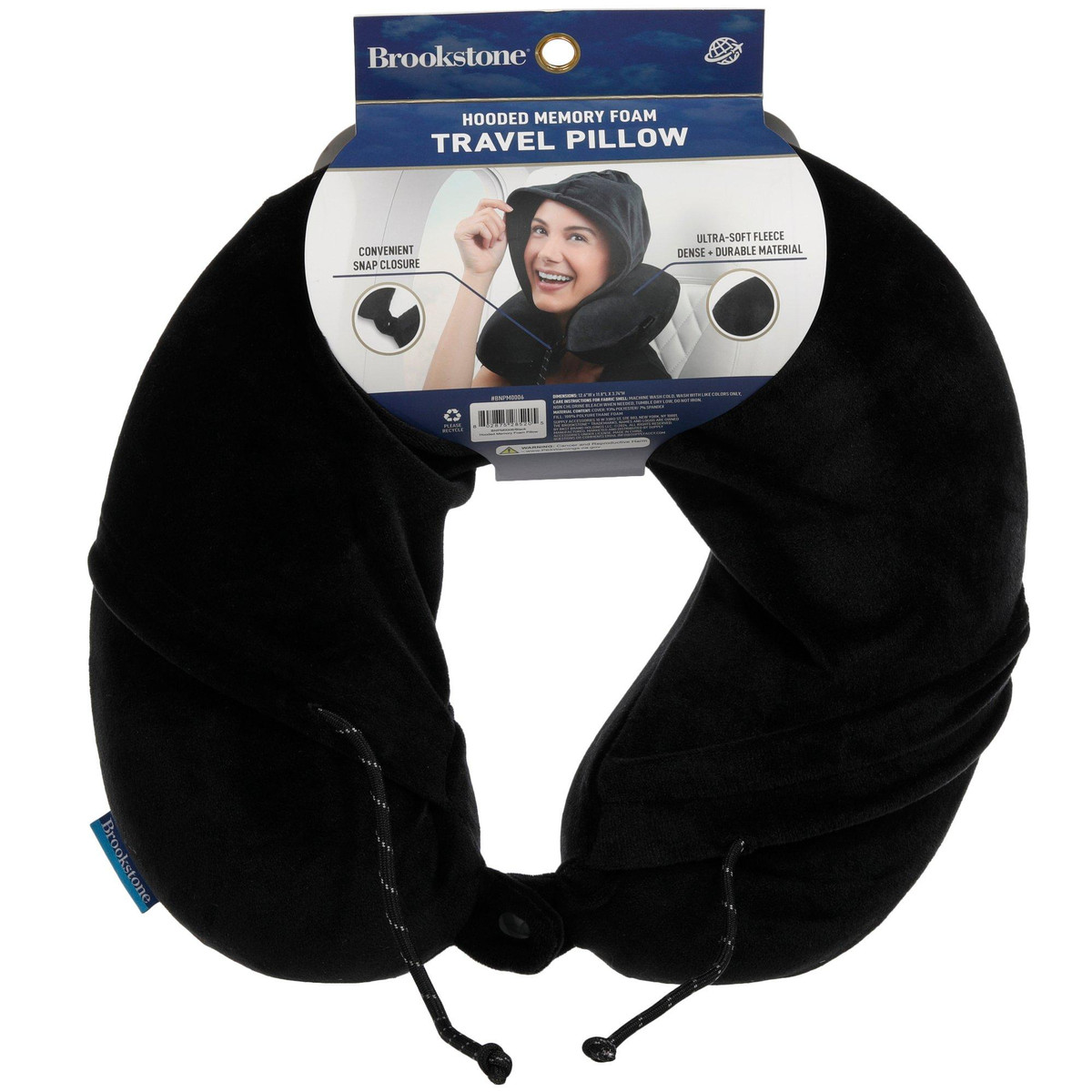 Journey into comfort with this Hooded Memory Foam Travel Pillow. Made from durable materials, it provides the perfect combination of support and softness. The memory foam pillow contours to your neck, ensuring restful sleep on the go. Featuring an adjustable light blocking fleece hood with a snap closure at the neck and a machine washable cover. Fabrication is 93% Polyester, 7% Spandex. Measures approximately 12.6 in x 11.8 in x 3.74 in.