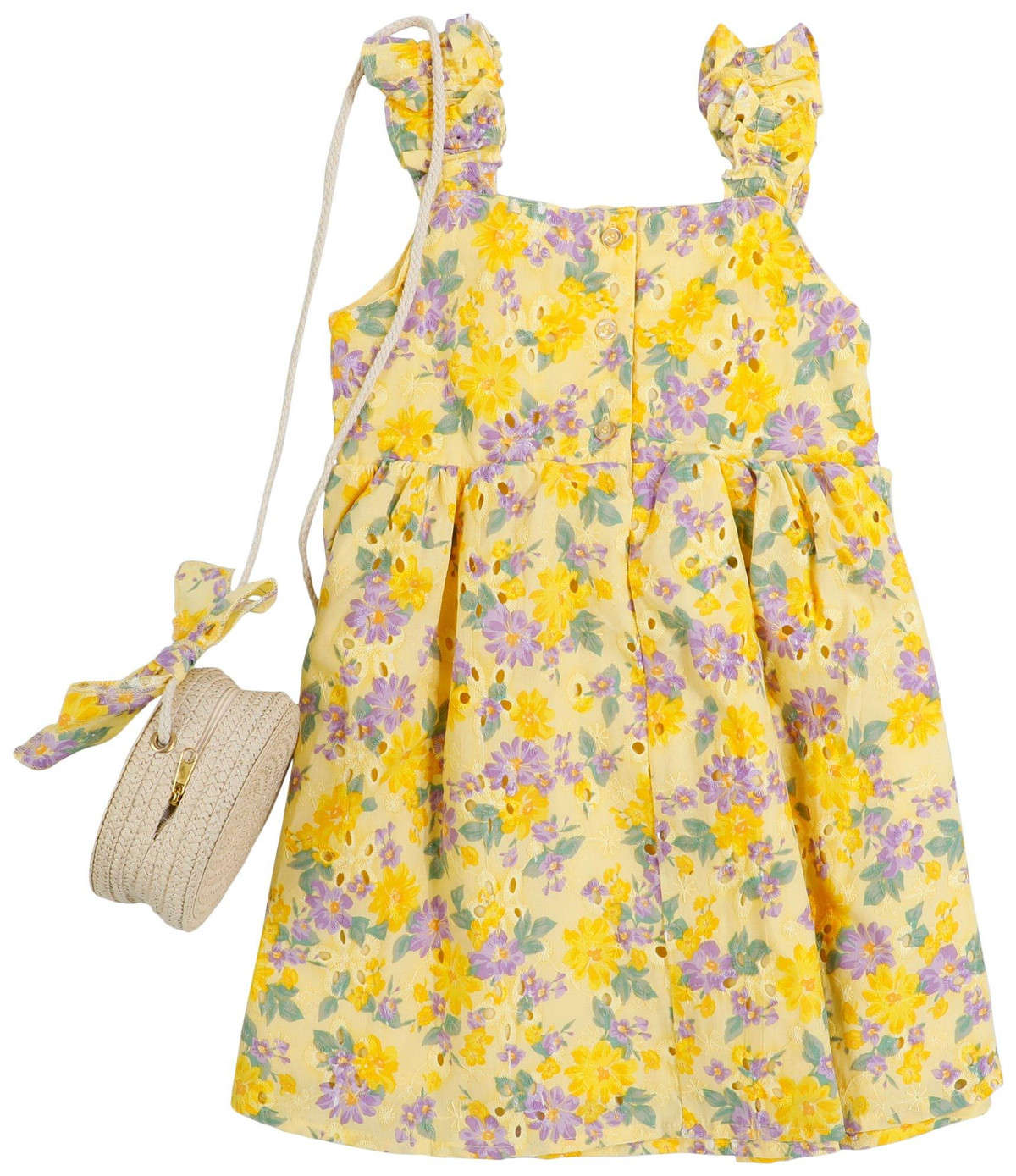 Dress your little one in adorable elegance with this 2 Piece Dress Set. This charming ensemble includes a cotton eyelet dress adorned with a delightful floral print, perfect for any special occasion or everyday wear. The set is completed with a woven shoulder bag, adding a touch of playful sophistication.