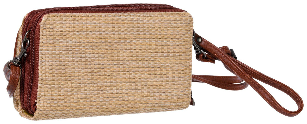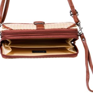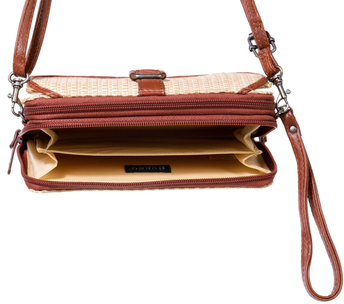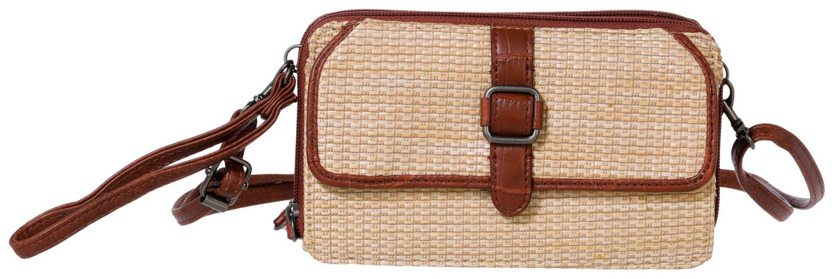 Bueno Natural Straw Crossbody Bag brings breezy, boho charm to your warm-weather style. Crafted from woven straw with faux leather trim, it features a compact shape, secure closure, and an adjustable strap for hands-free ease.
