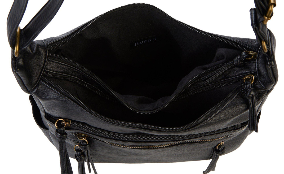 Stay effortlessly organized with this 8-pocket black crossbody hobo bag. Made from lightweight, durable materials, it offers spacious compartments for your daily essentials and a slip pocket inside for added security. With a comfortable crossbody design and relaxed silhouette, it is ideal for errands, travel, or everyday use.